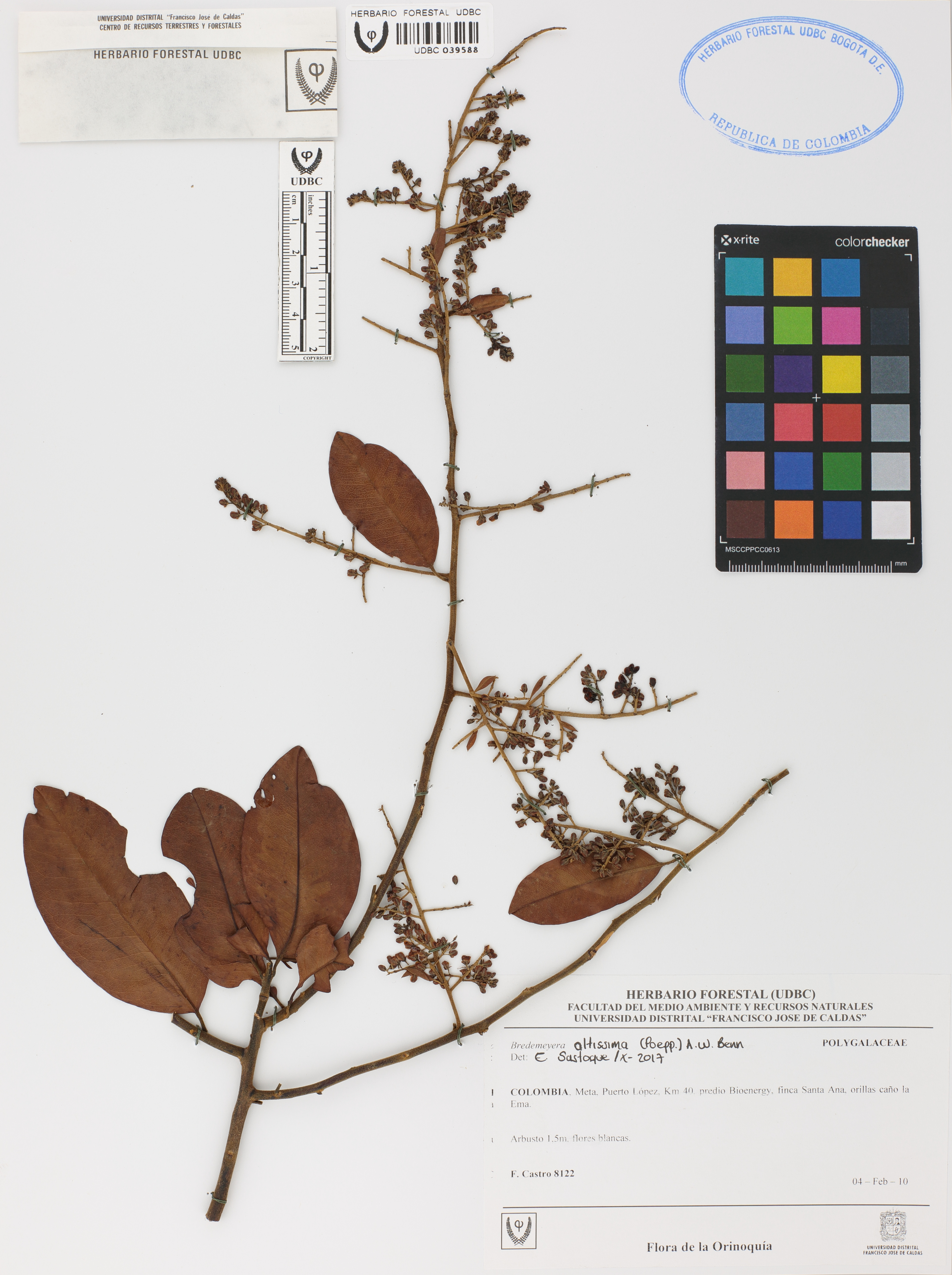 Fotografía del ejemplar Castro, F. 8122, determinado como Bredemeyera altissima en el año 2017