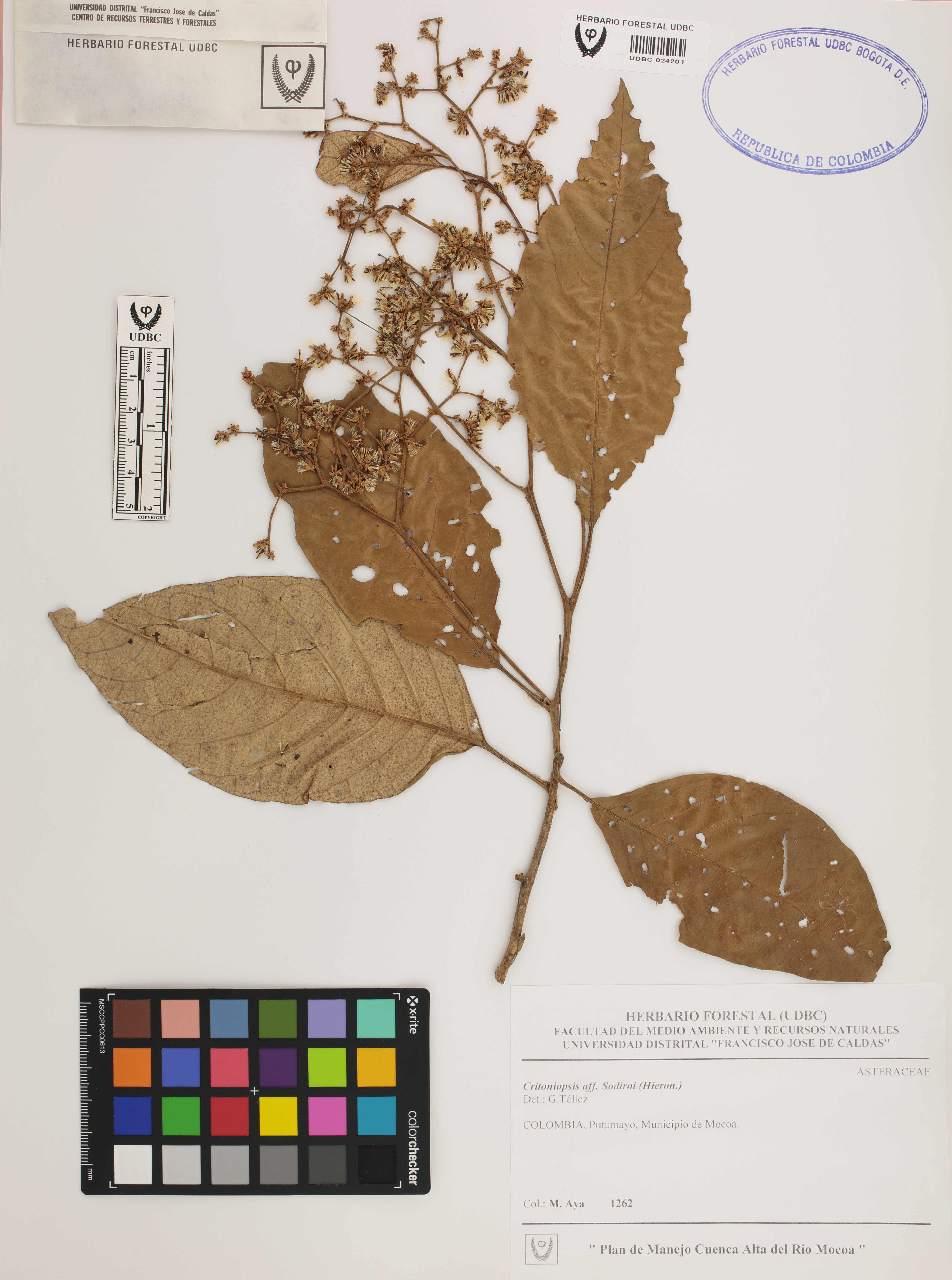 Fotografía del ejemplar Aya, M. 1262, determinado como Critoniopsis sodiroi
