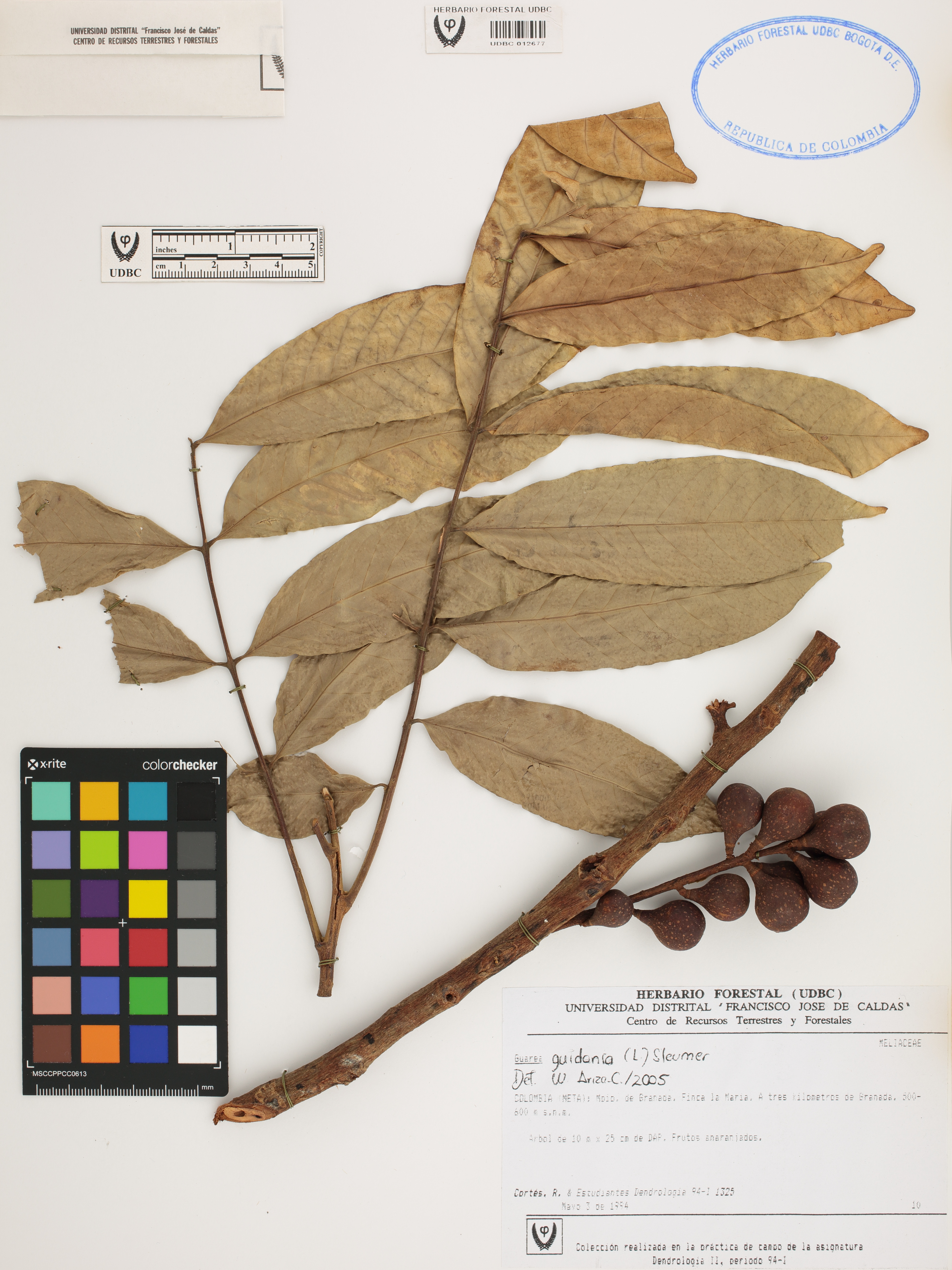 Fotografía del ejemplar Cortés, R. 1325, determinado como Guarea guidonia en el año 2005