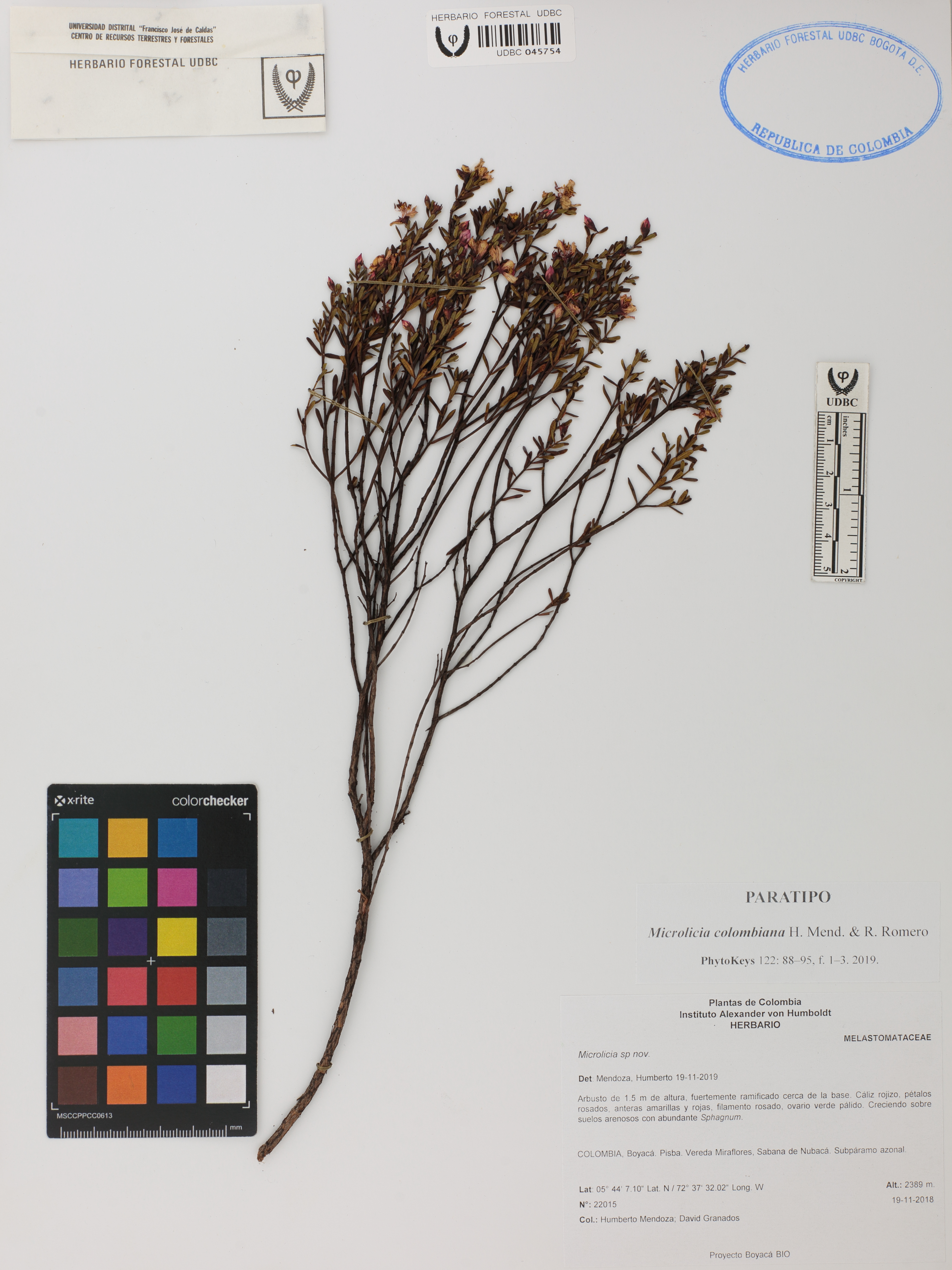 Fotografía del ejemplar Mendoza, H. 22015, Isotipo de Microlicia colombiana
