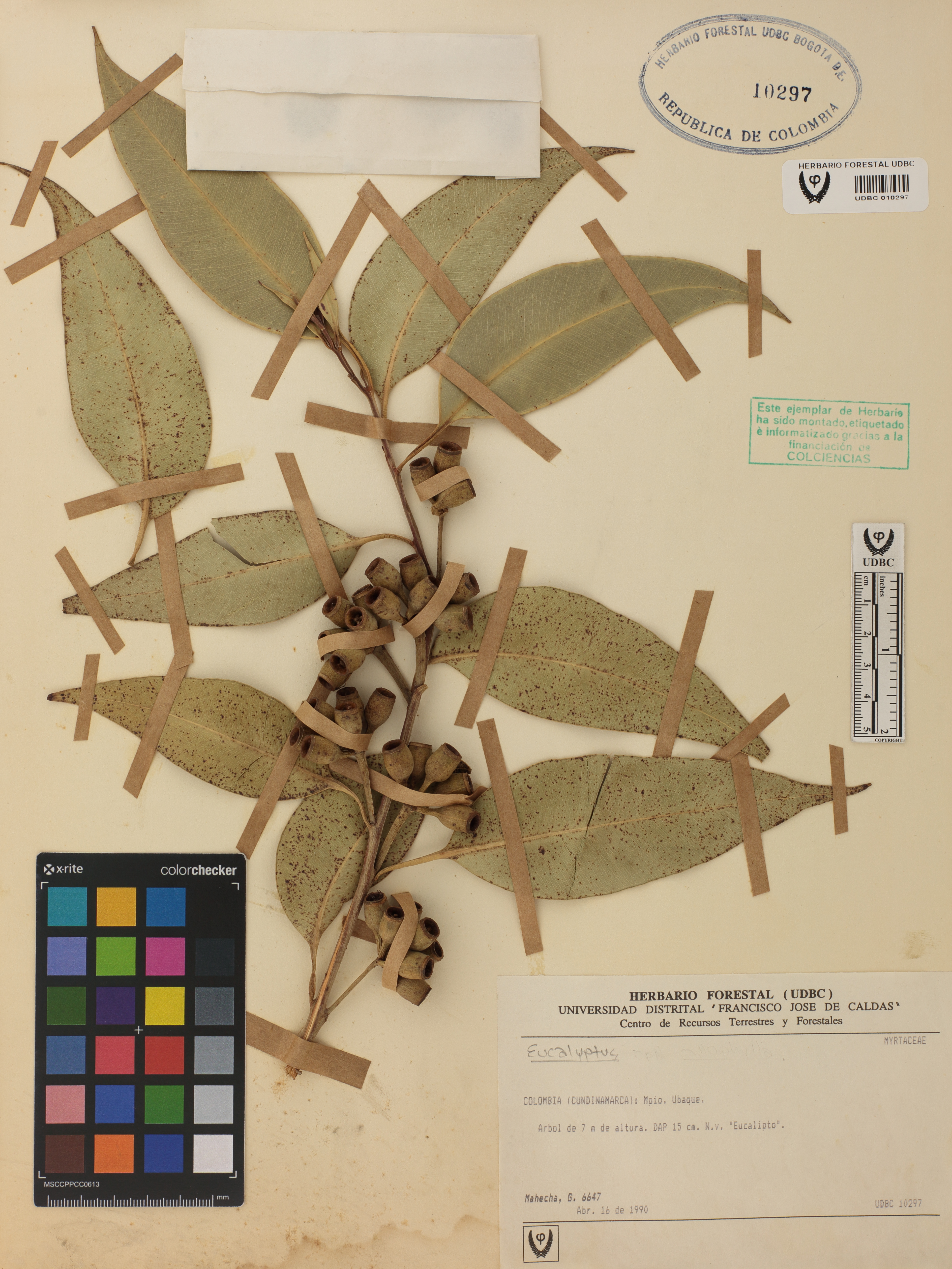 Fotografía del ejemplar Mahecha, G. 6647, determinado como Eucalyptus sp.