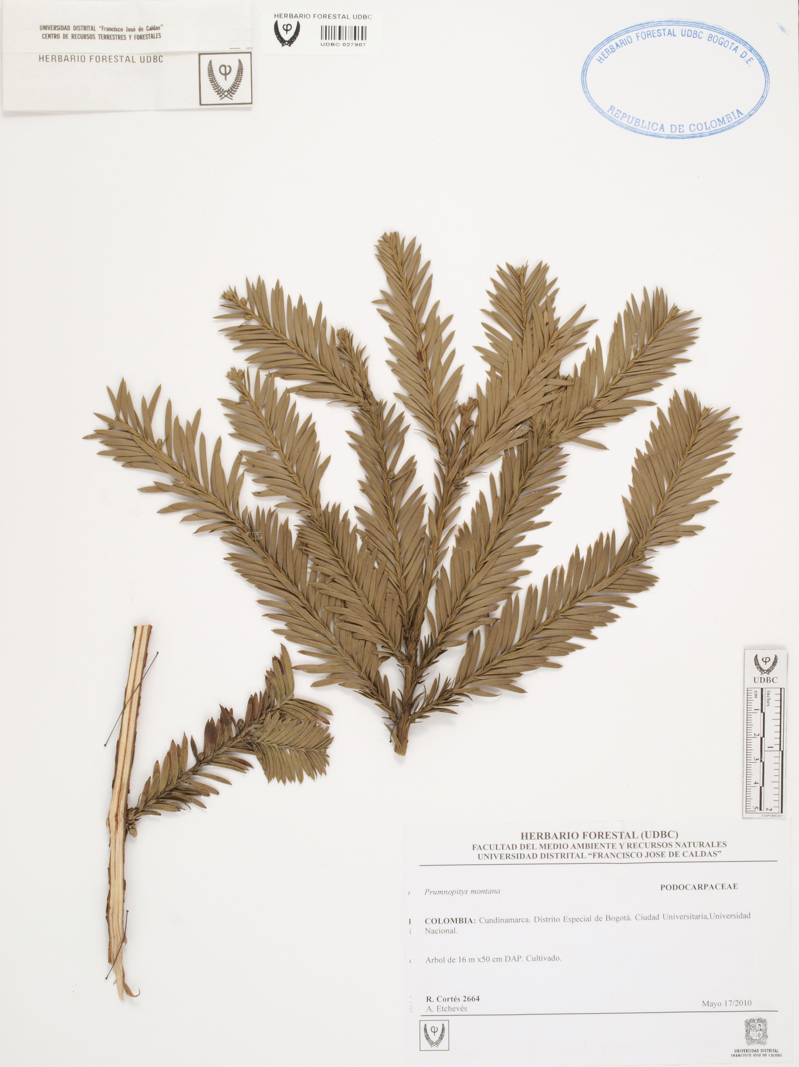Fotografía del ejemplar Cortés, R. 2664, determinado como Prumnopitys montana