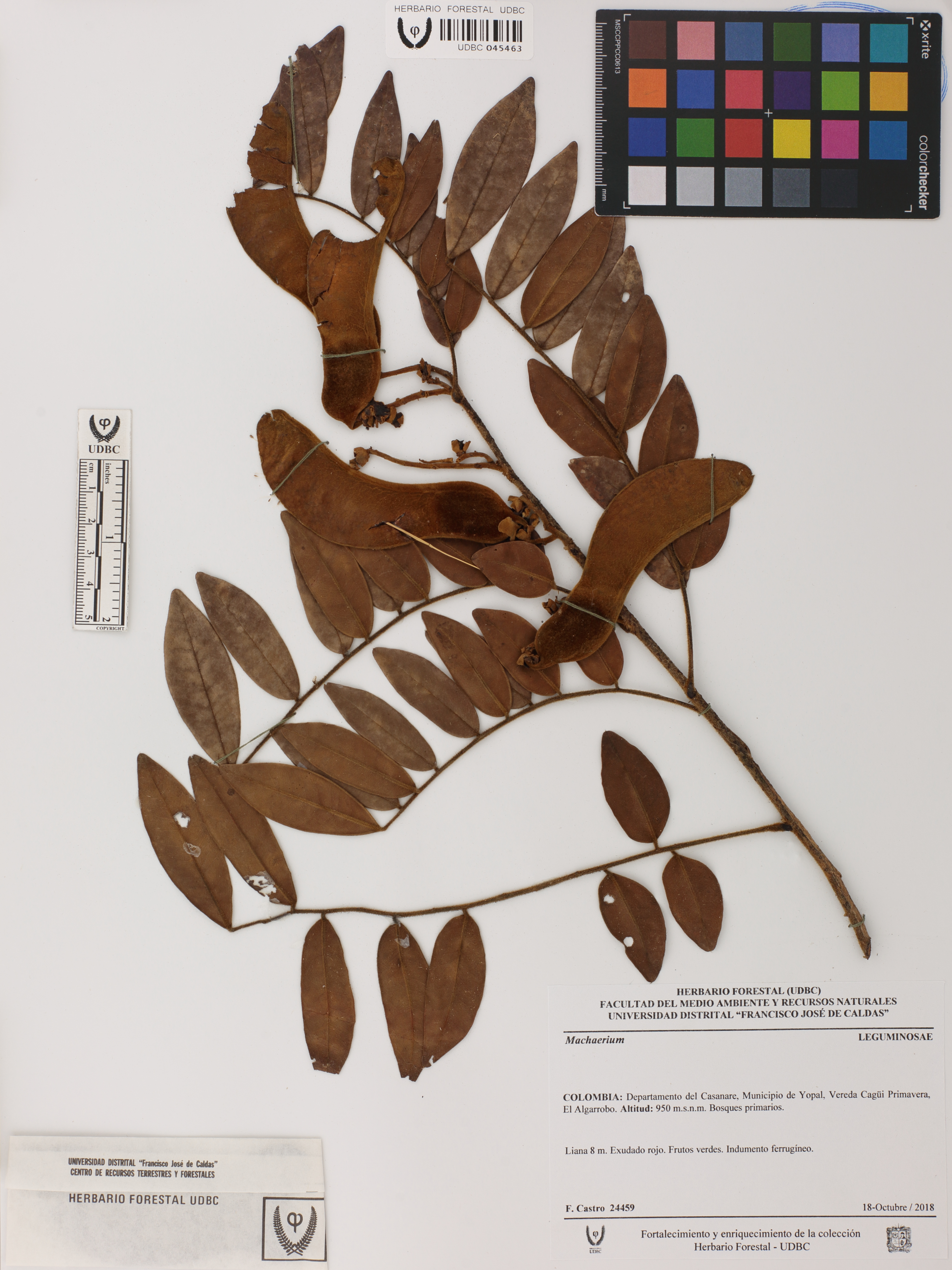 Fotografía del ejemplar Castro, F. 24459, determinado como Machaerium sp.