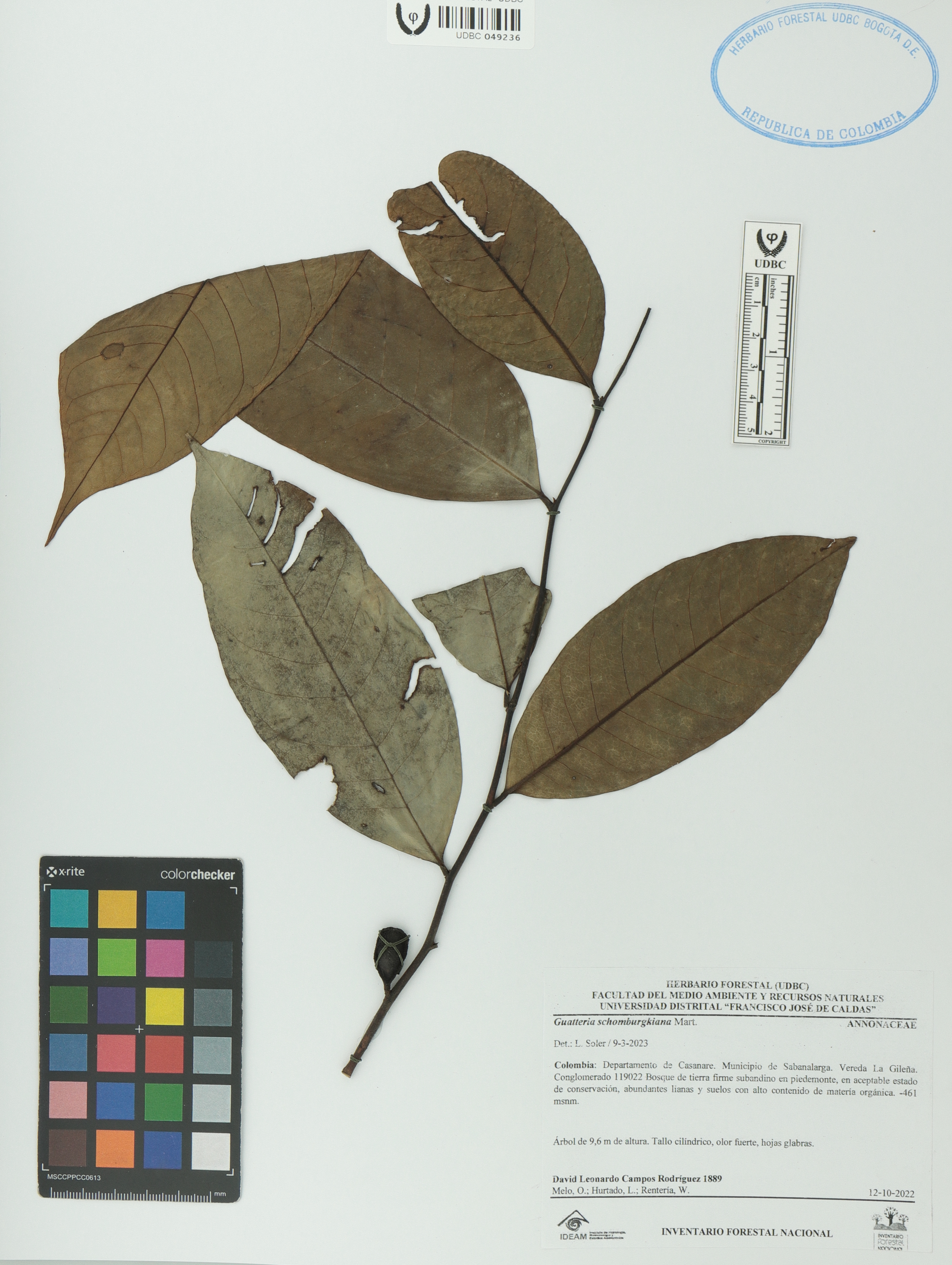 Fotografía del ejemplar Campos-Rodríguez, D. 1889, determinado como Guatteria schomburgkiana en el año 2023