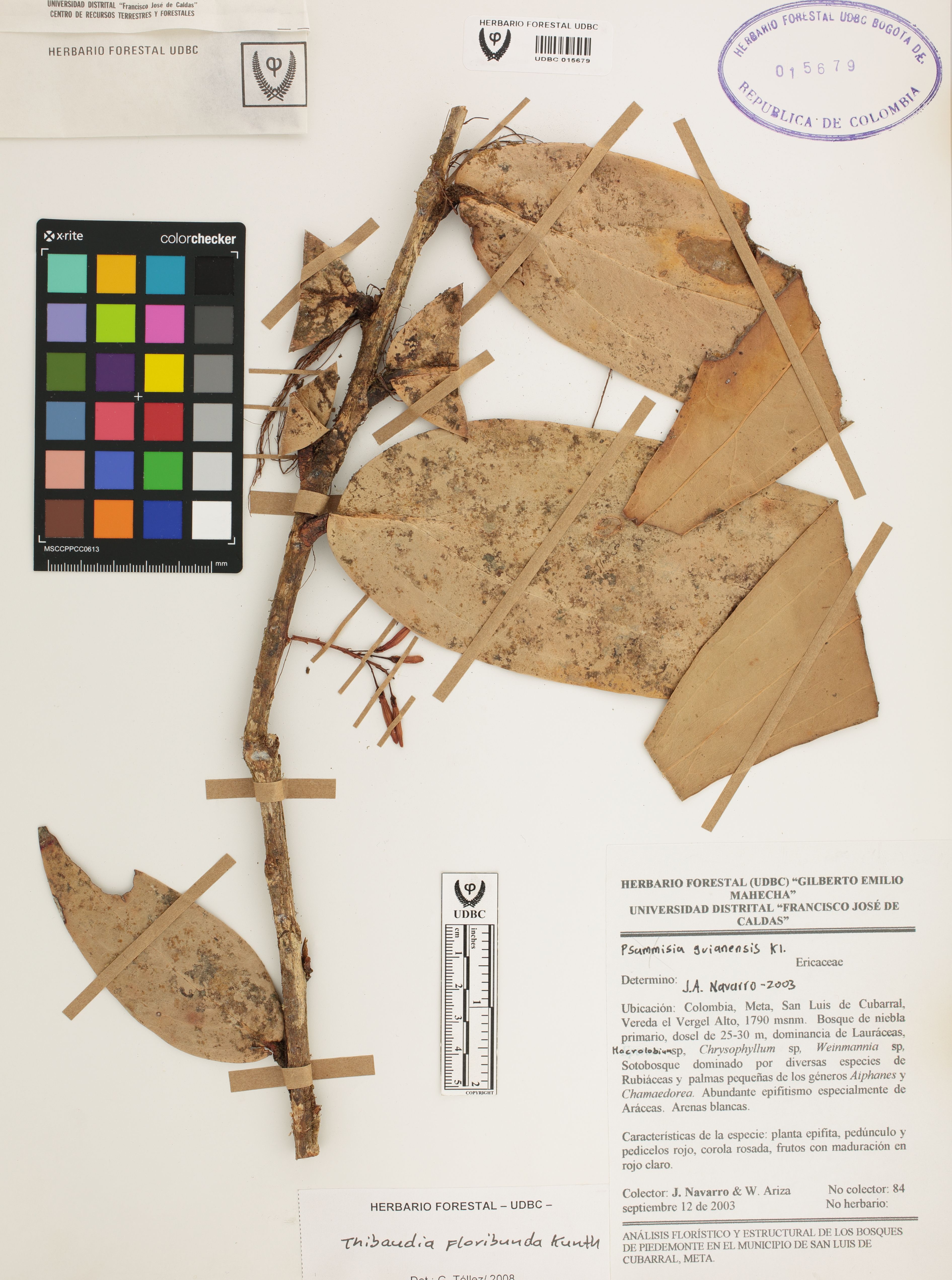 Fotografía del ejemplar Navarro, J. 84, determinado como Thibaudia floribunda en el año 2008