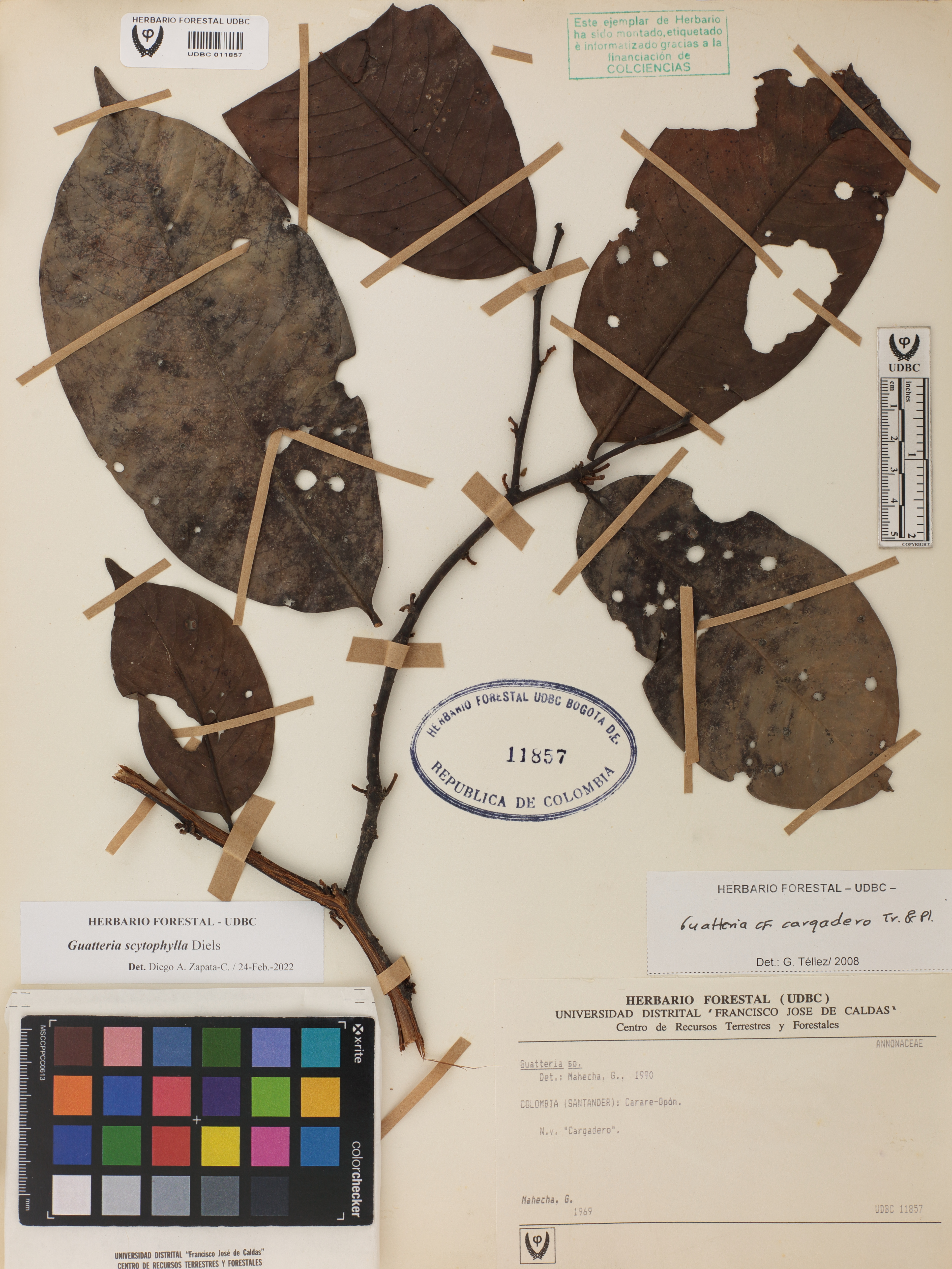 Fotografía del ejemplar Mahecha, G., determinado como Guatteria scytophylla en el año 2022