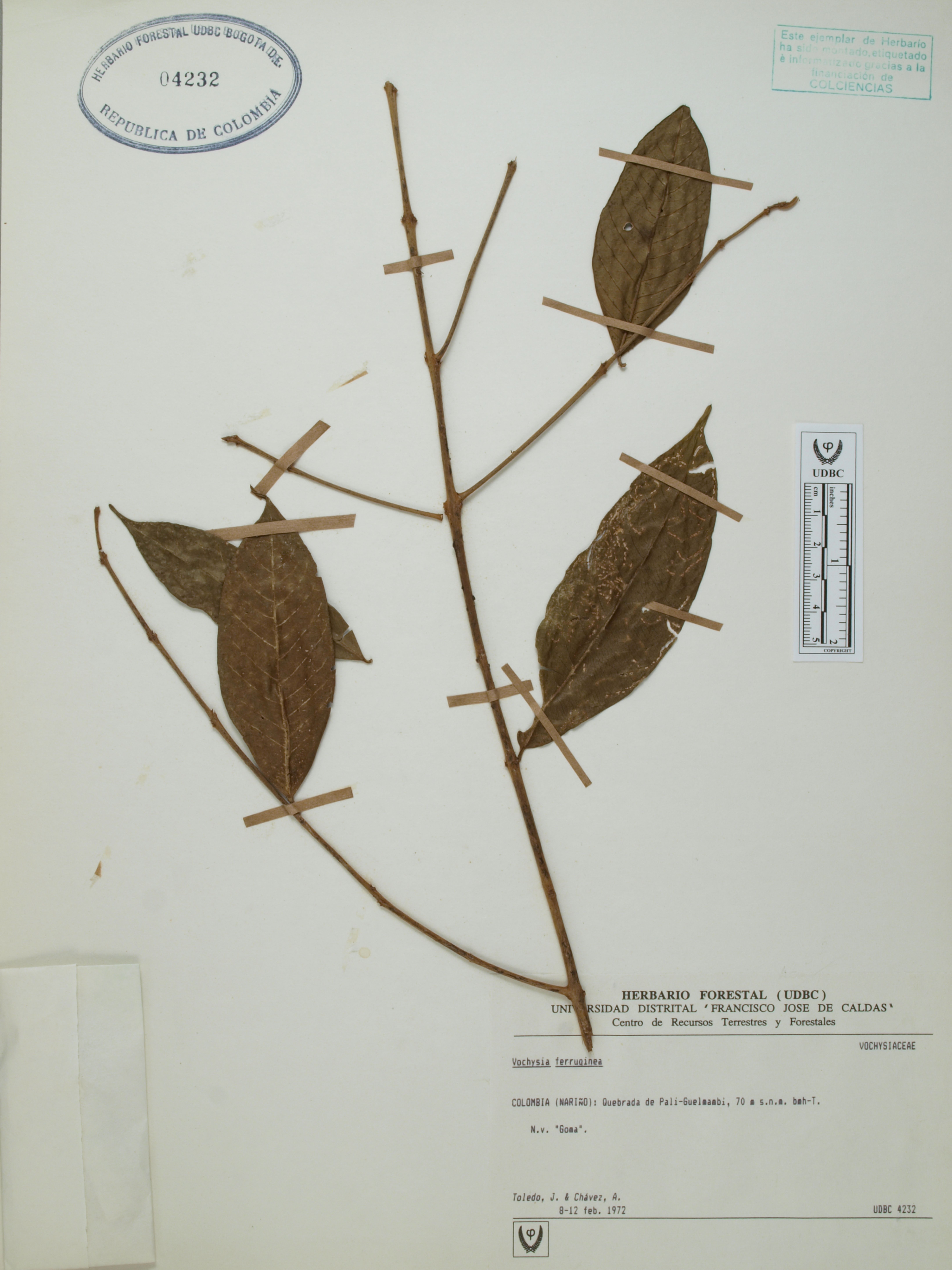 Fotografía del ejemplar Toledo, J., determinado como Vochysia ferruginea