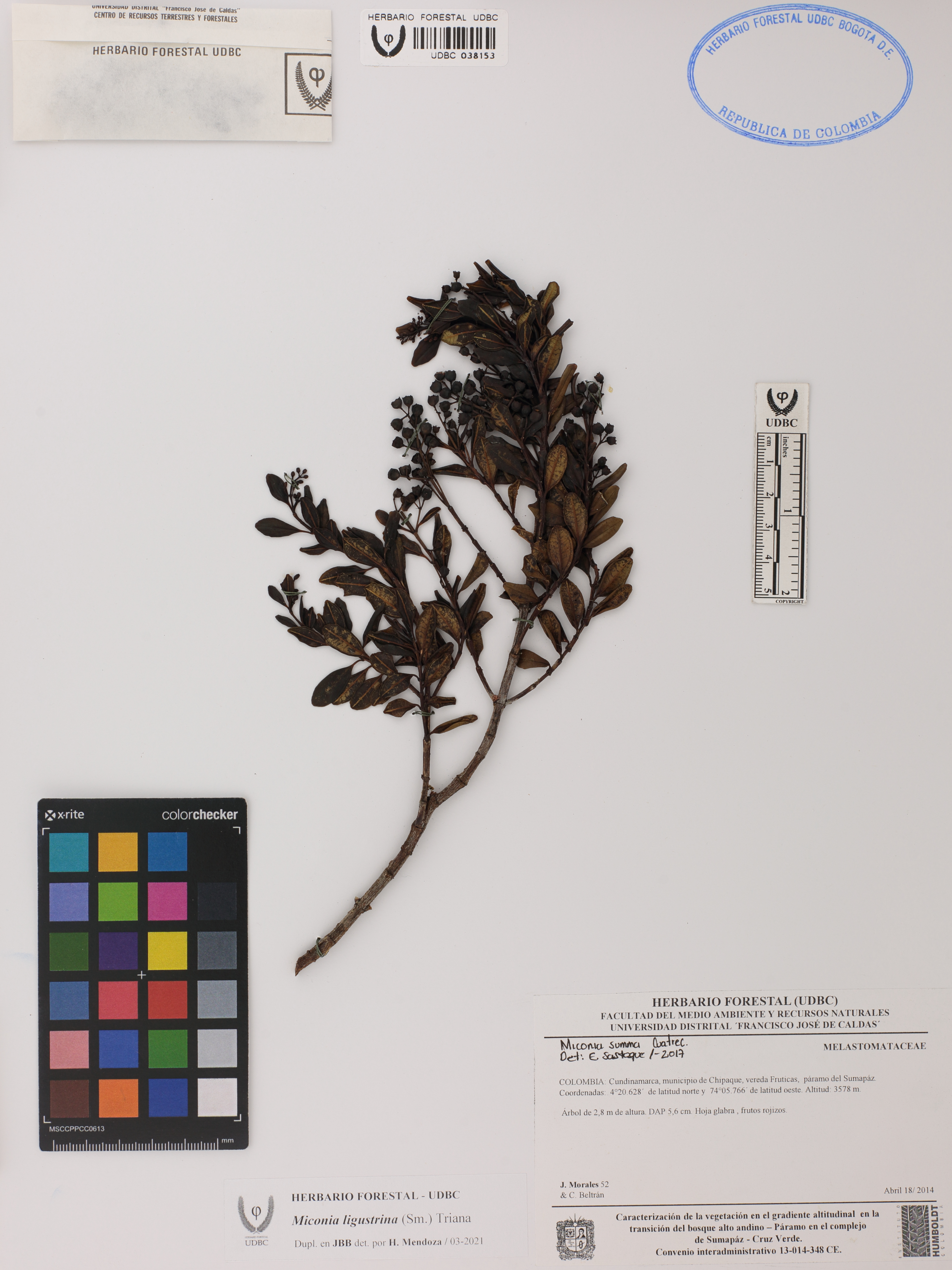 Fotografía del ejemplar Morales, J. 52, determinado como Miconia ligustrina en el año 2021