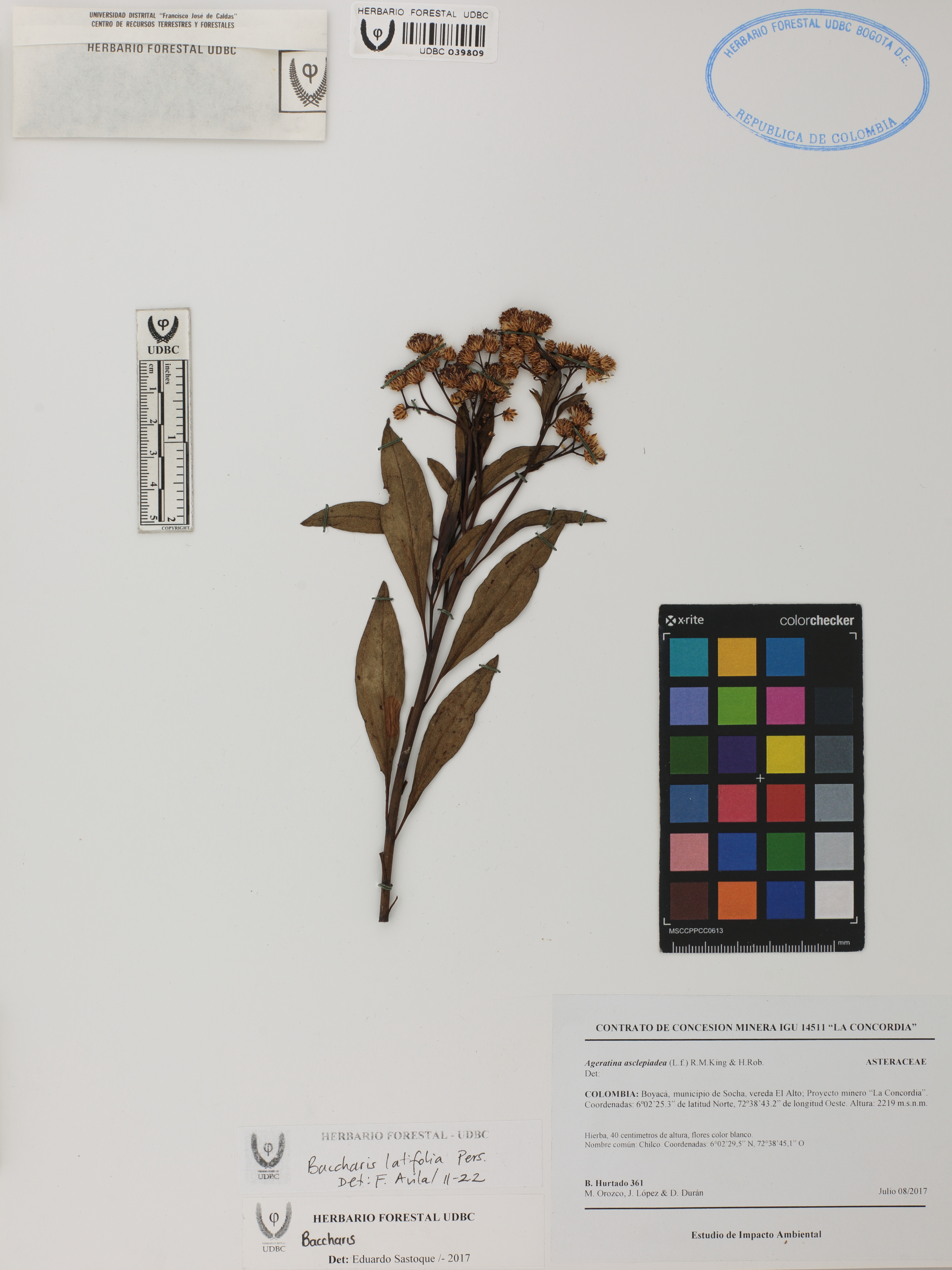 Fotografía del ejemplar Hurtado, B. 361, determinado como Baccharis latifolia en el año 2022