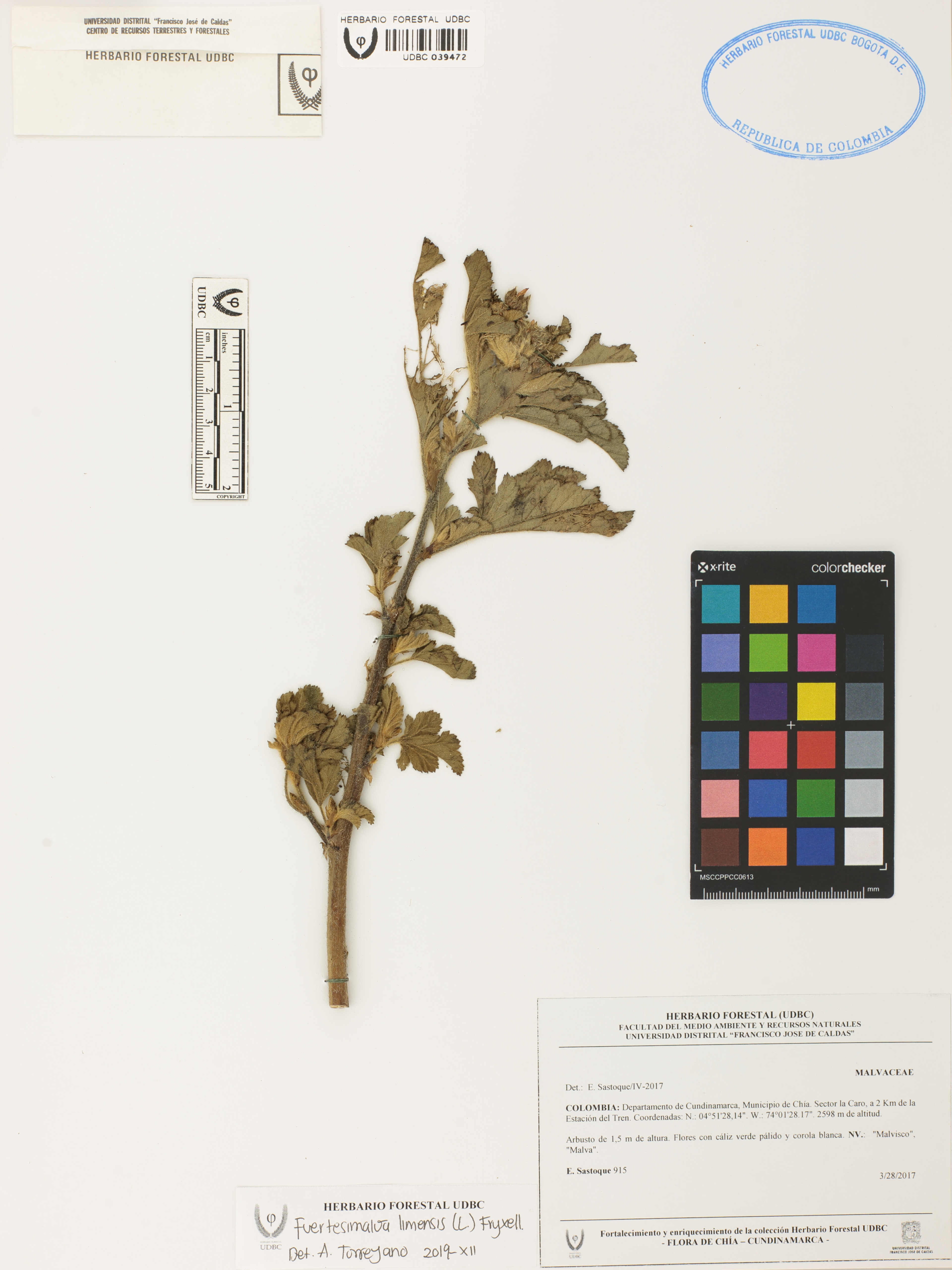 Fotografía del ejemplar Sastoque, E. 915, determinado como Fuertesimalva limensis en el año 2019
