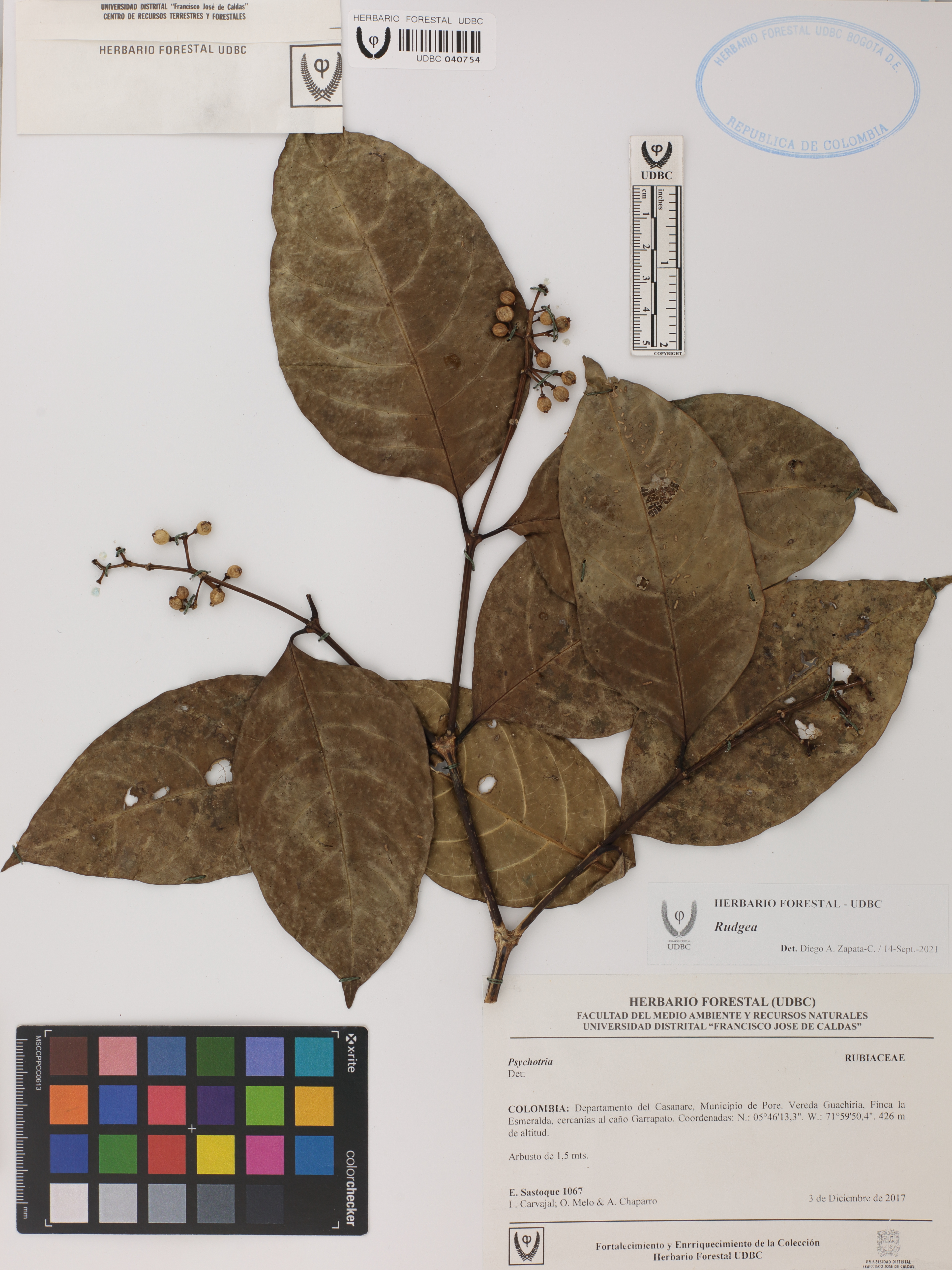 | dc.description | Fotografía del ejemplar Sastoque, E. 1067, determinado como Rudgea sp. en el año 2021 | |