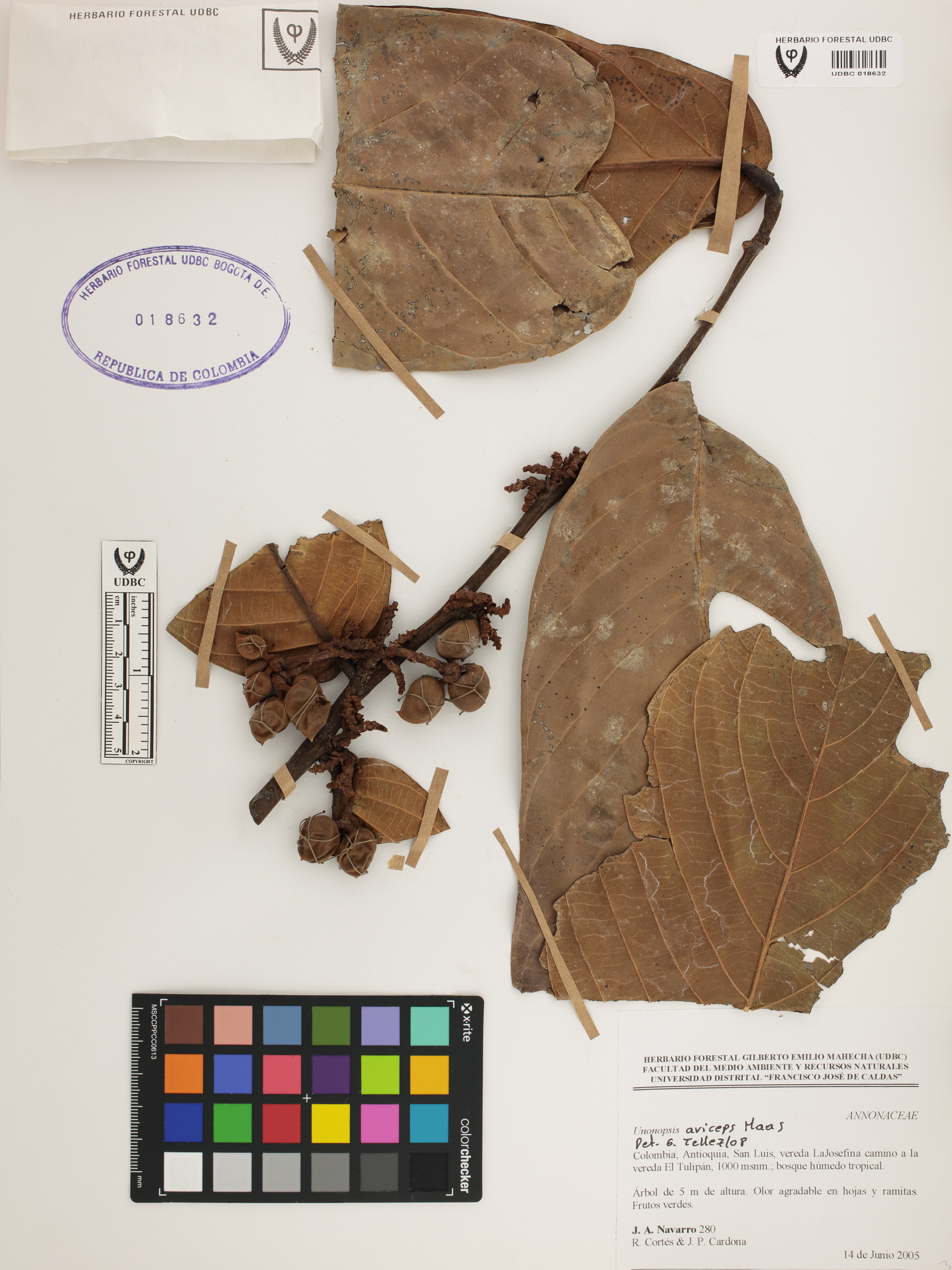 Fotografía del ejemplar Navarro, J. 280, determinado como Unonopsis aviceps en el año 2008