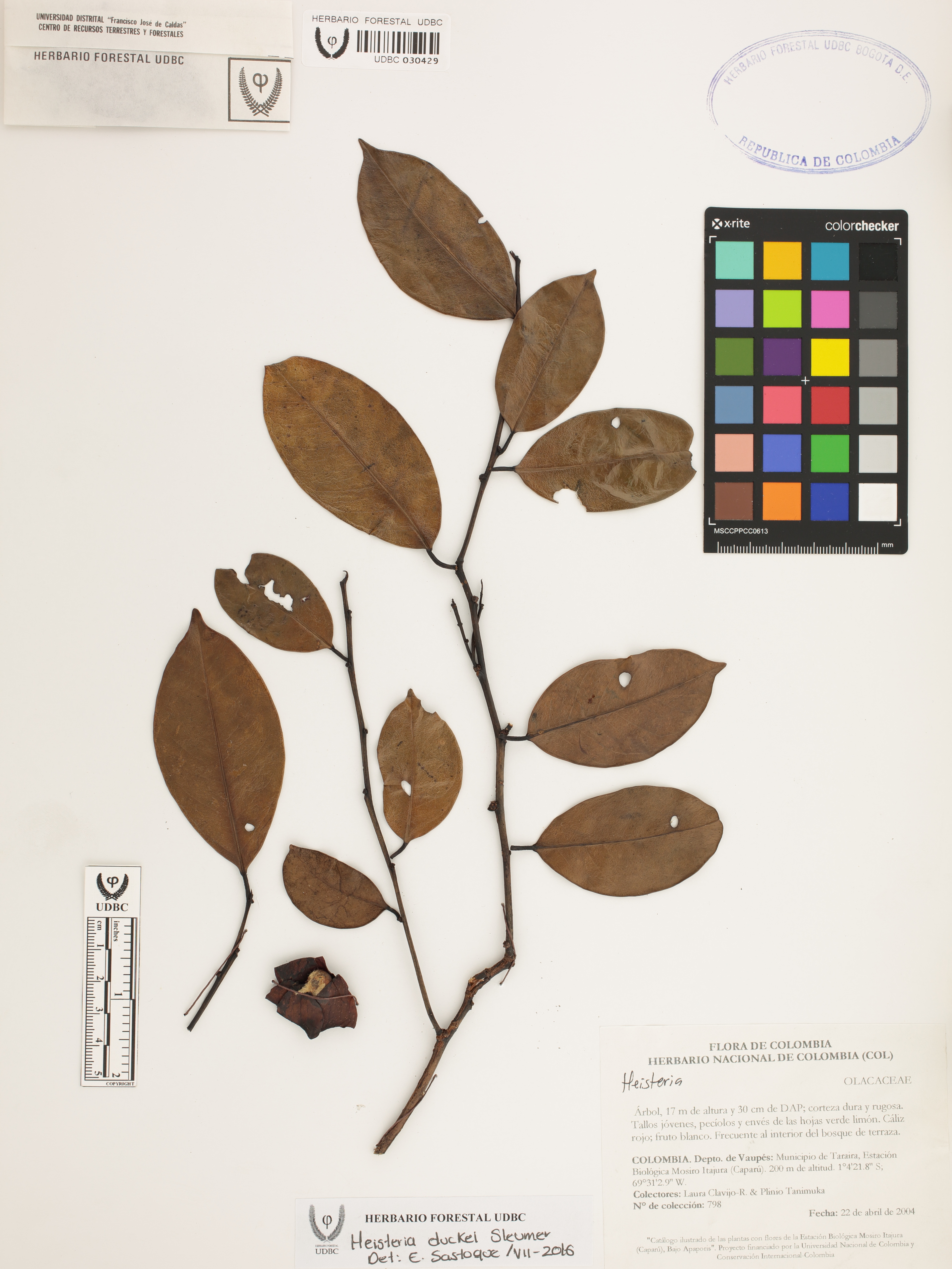 Fotografía del ejemplar Clavijo-R., L. 798, determinado como Heisteria duckei en el año 2016