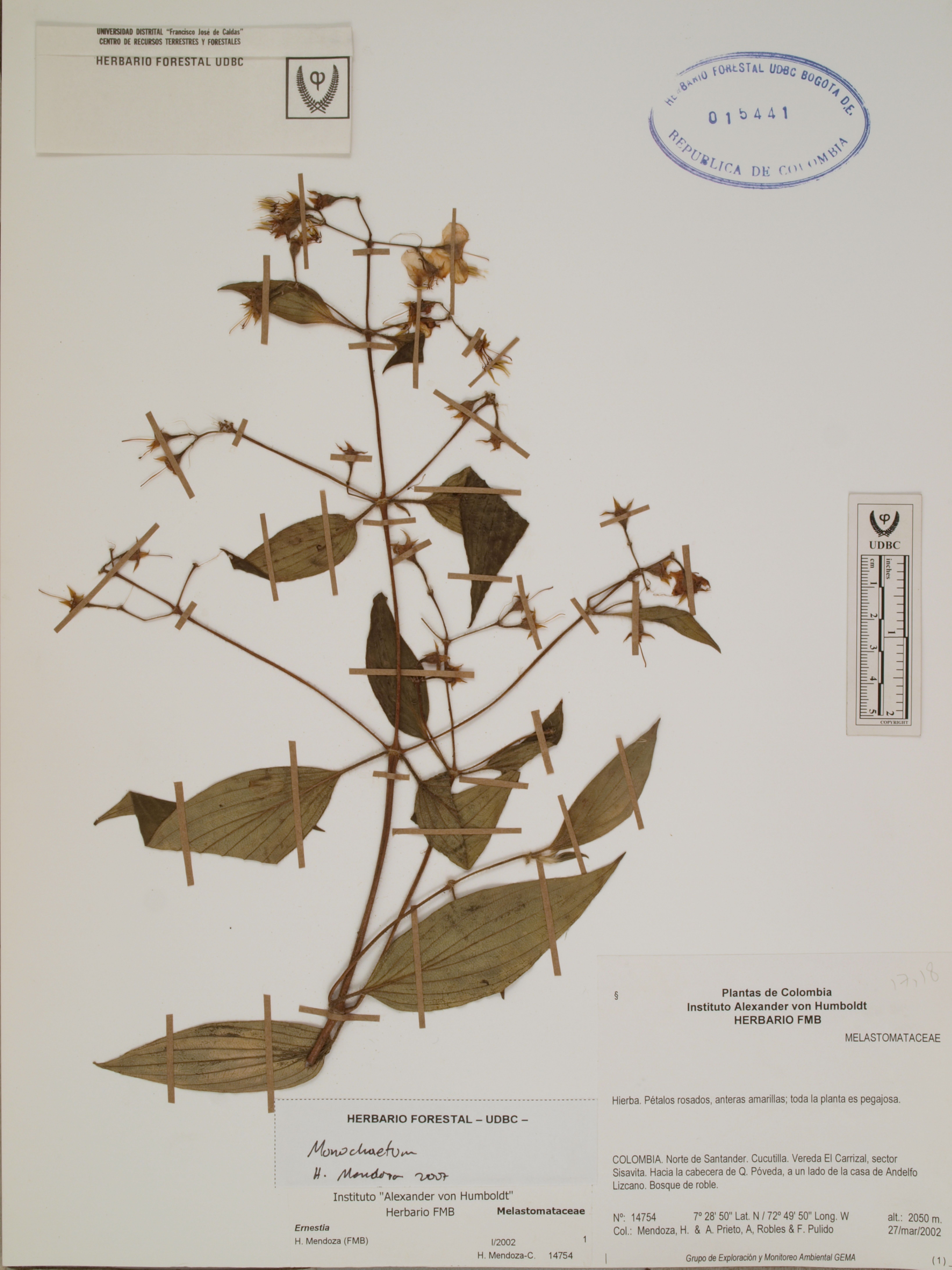 Fotografía del ejemplar Dávila, D. 522, determinado como Erisma laurifolium en el año 2001