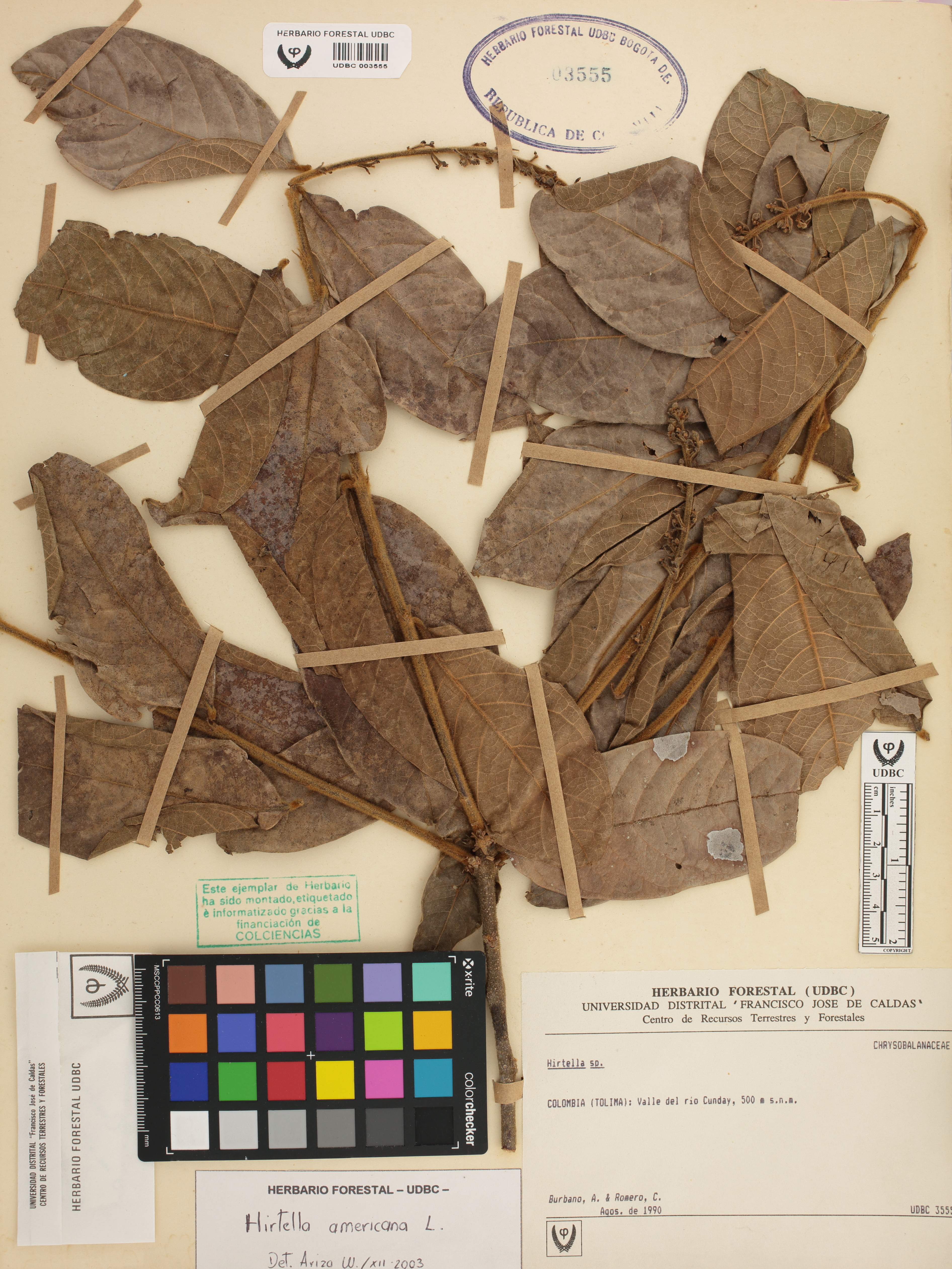 Fotografía del ejemplar Burbano, A., determinado como Hirtella americana en el año 2003