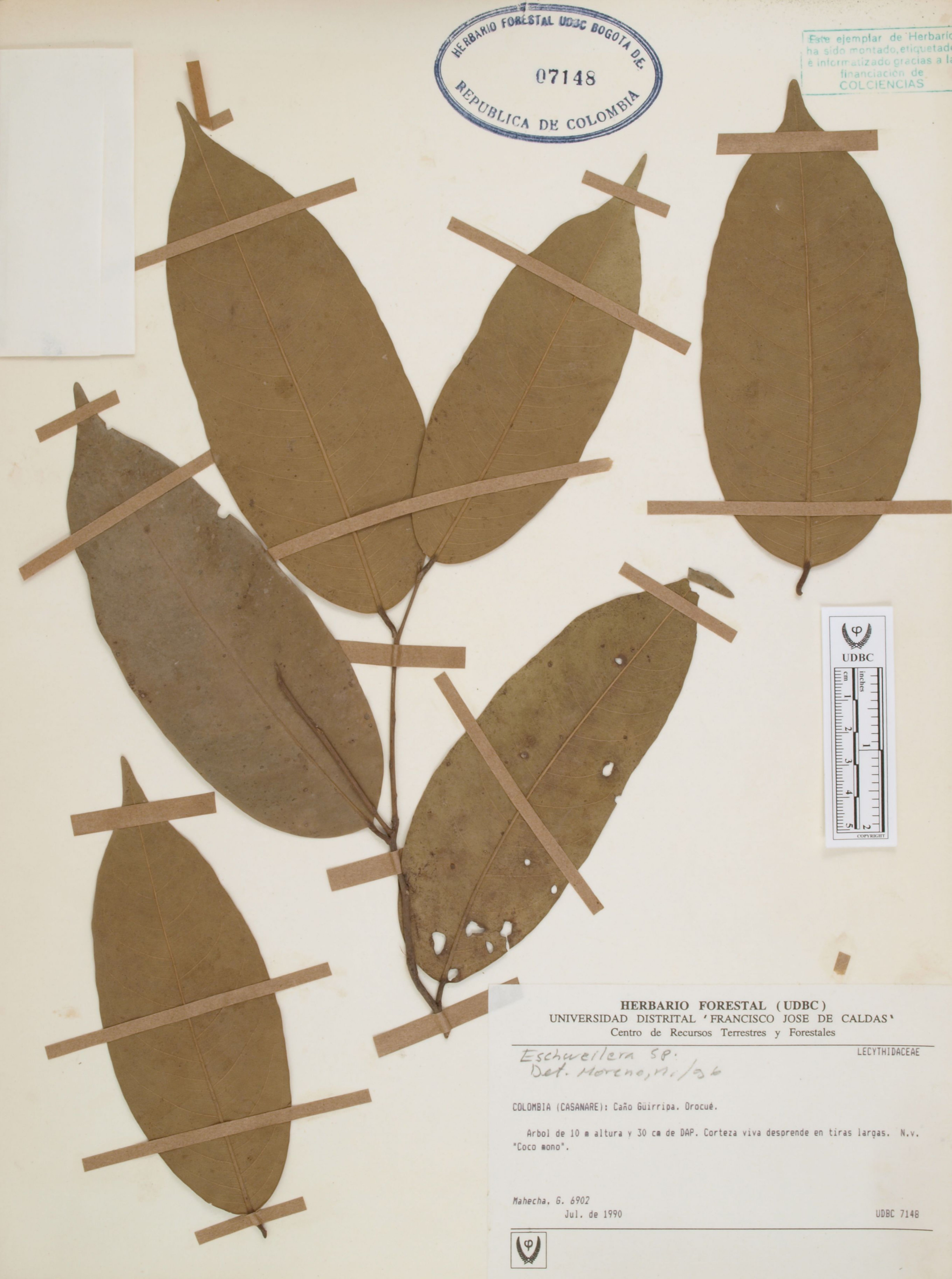 Fotografía del ejemplar Mahecha, G. 6902, determinado como Eschweilera sp. en el año 1996