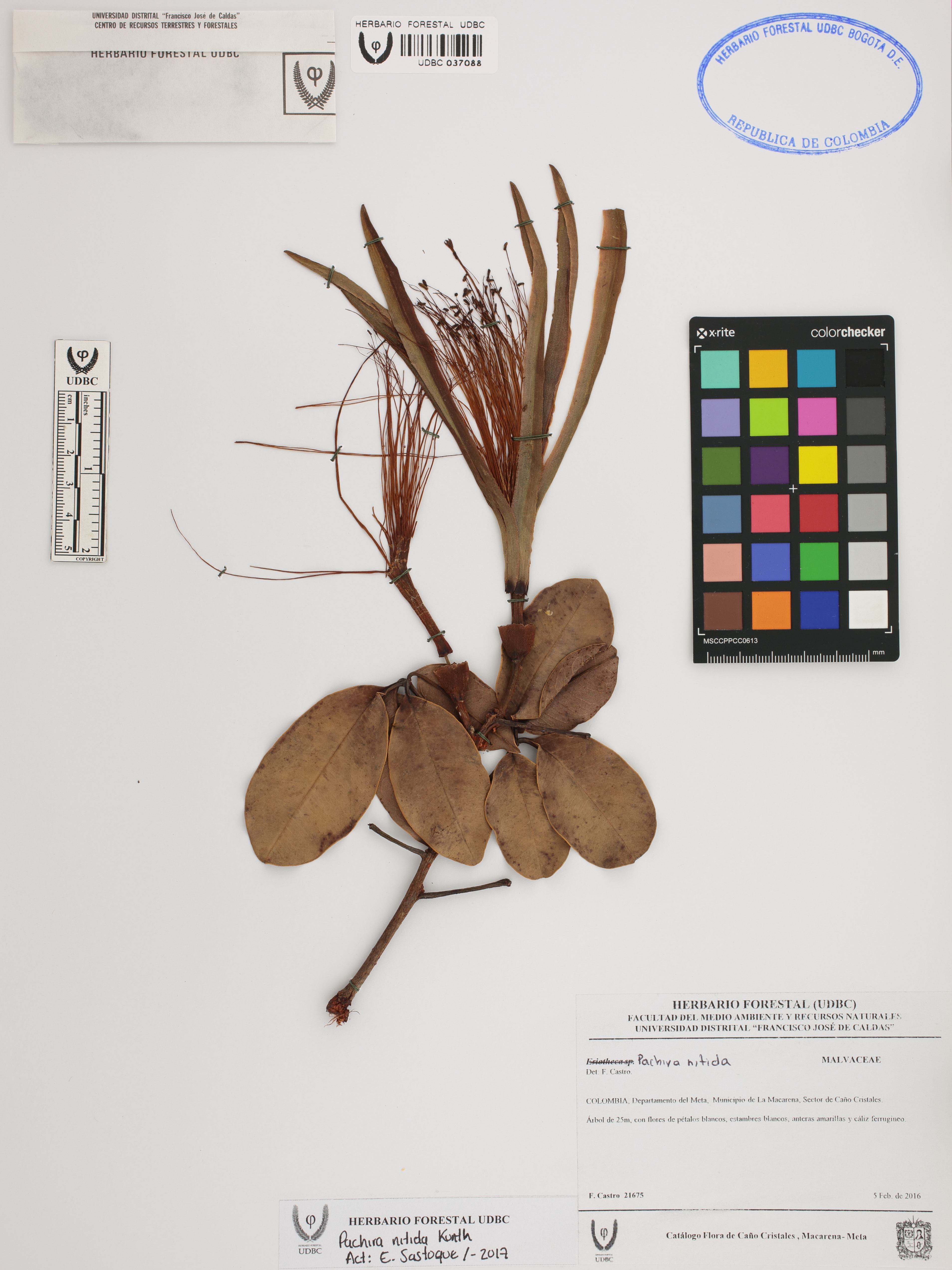 | dc.description | Fotografía del ejemplar Castro, F. 21675, determinado como Pachira nitida en el año 2017 | |