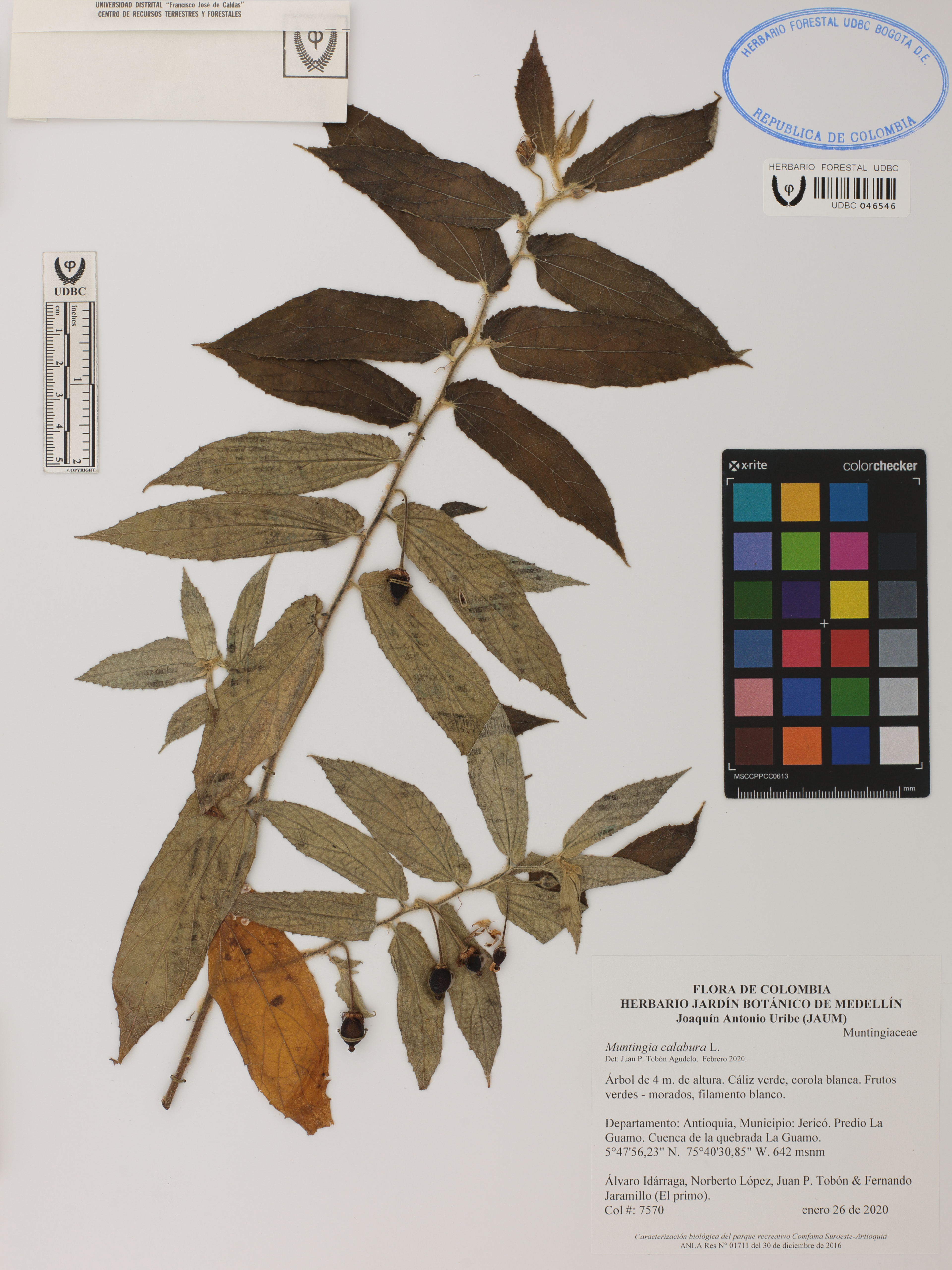 | dc.description | Fotografía del ejemplar Idárraga, Á. 7570, determinado como Muntingia calabura en el año 2020 | |