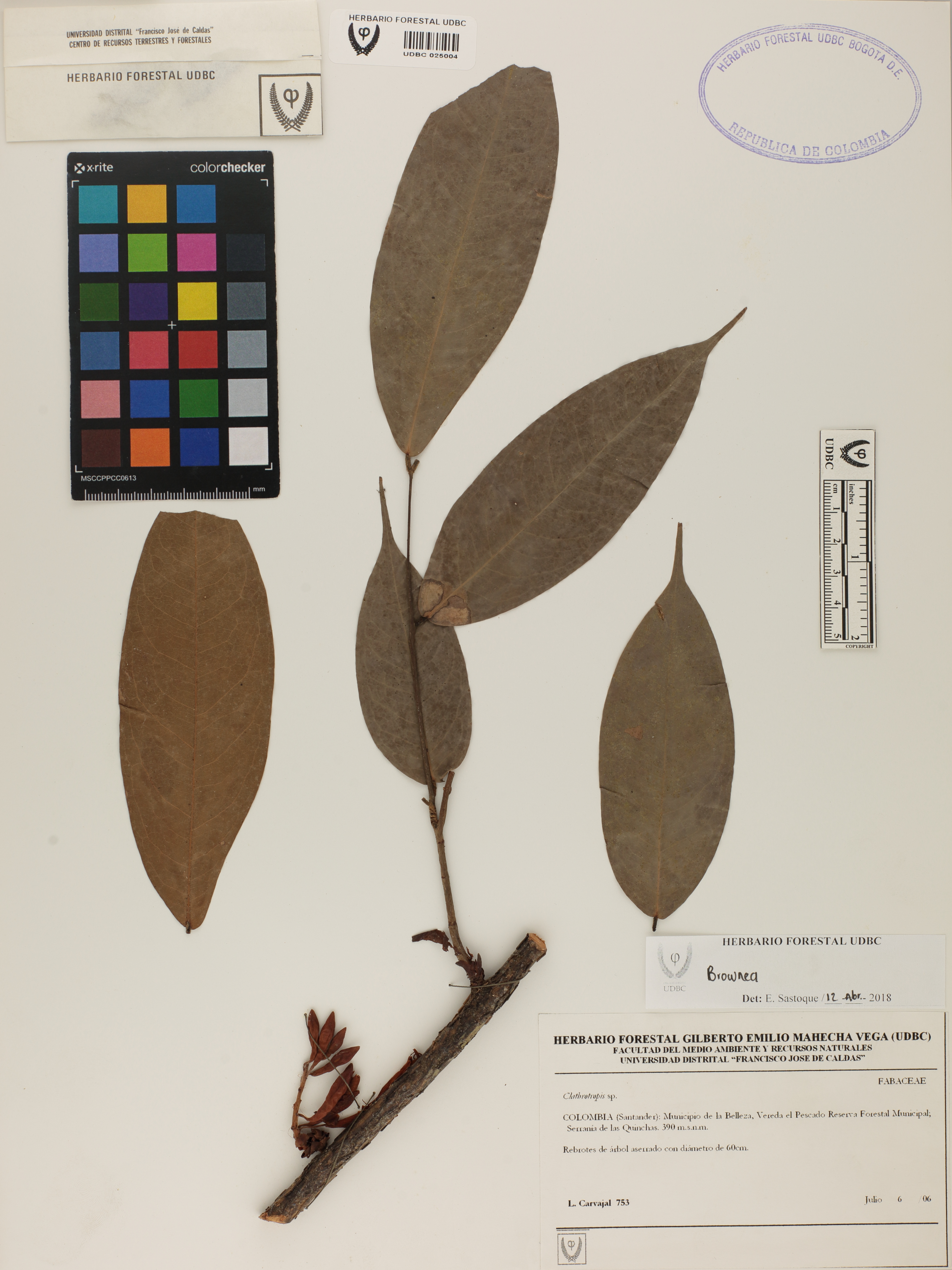 | dc.description | Fotografía del ejemplar Carvajal, L. 753, determinado como Brownea sp. en el año 2018 | |