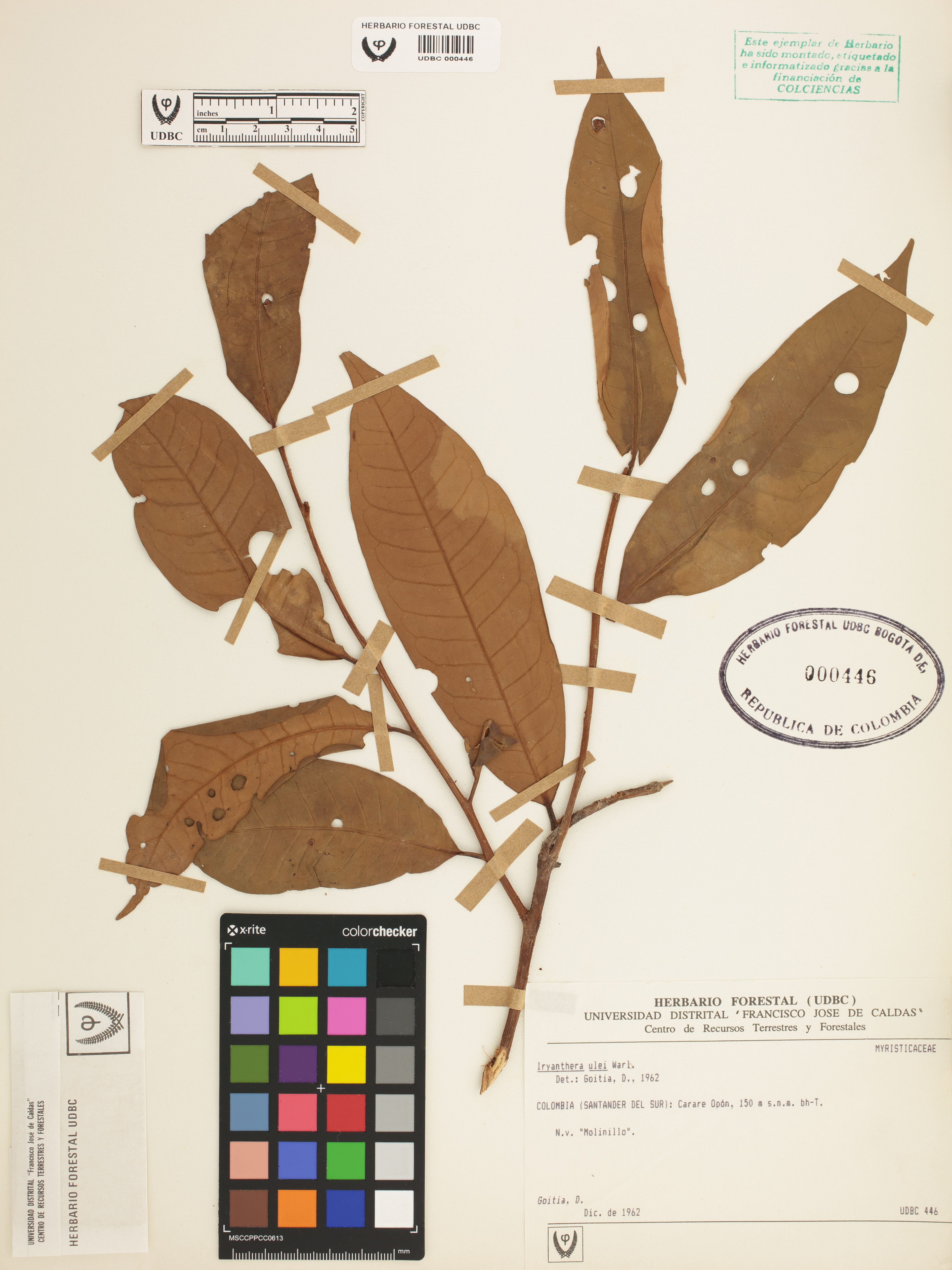 Fotografía del ejemplar Goitia, D., determinado como Iryanthera hostmannii en el año 1962