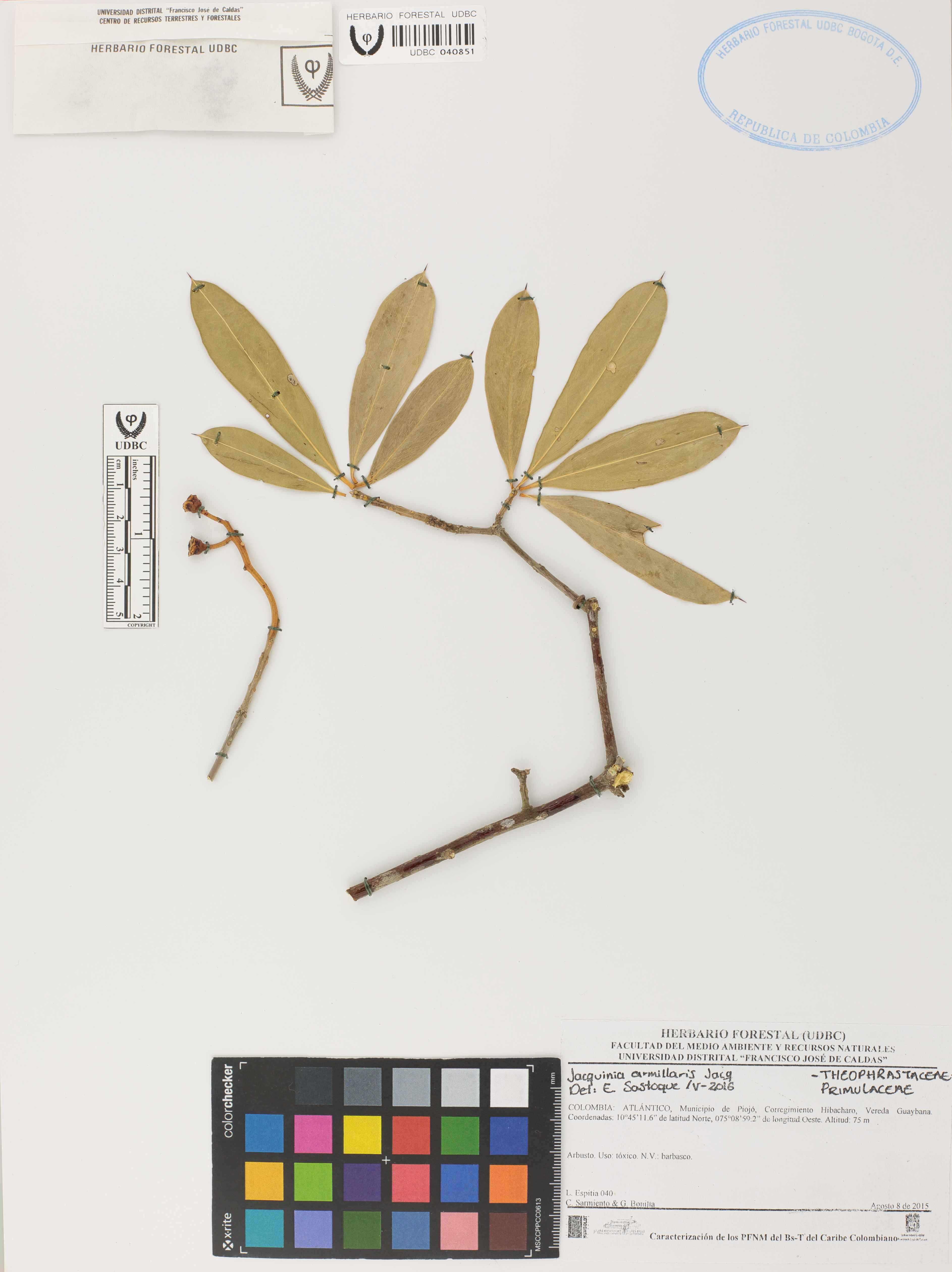 | dc.description | Fotografía del ejemplar Espitia, L. 40, determinado como Jacquinia armillaris en el año 2016 | |