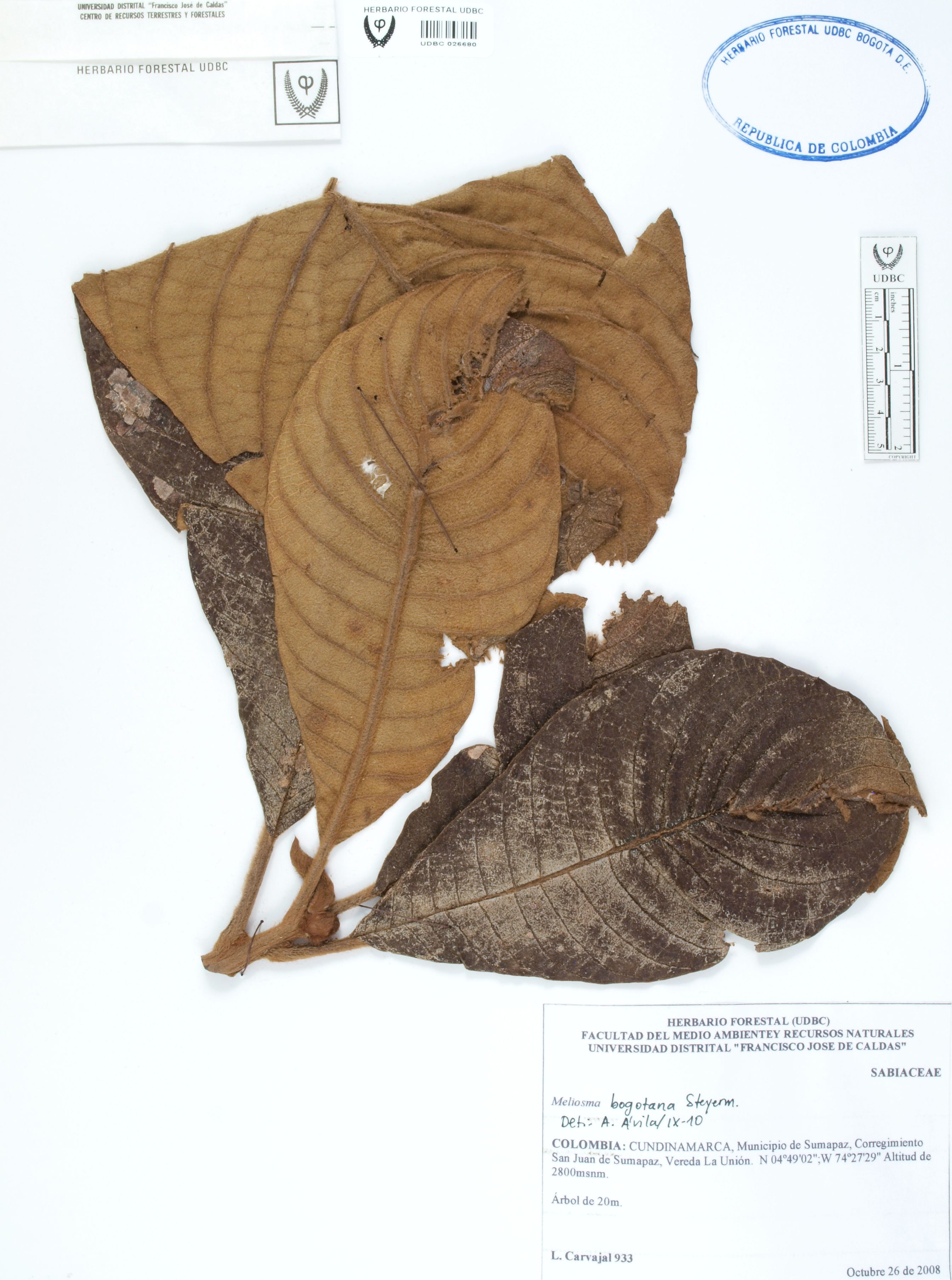 | dc.description | Fotografía del ejemplar Carvajal, L. 933, determinado como Meliosma bogotana en el año 2010 | |