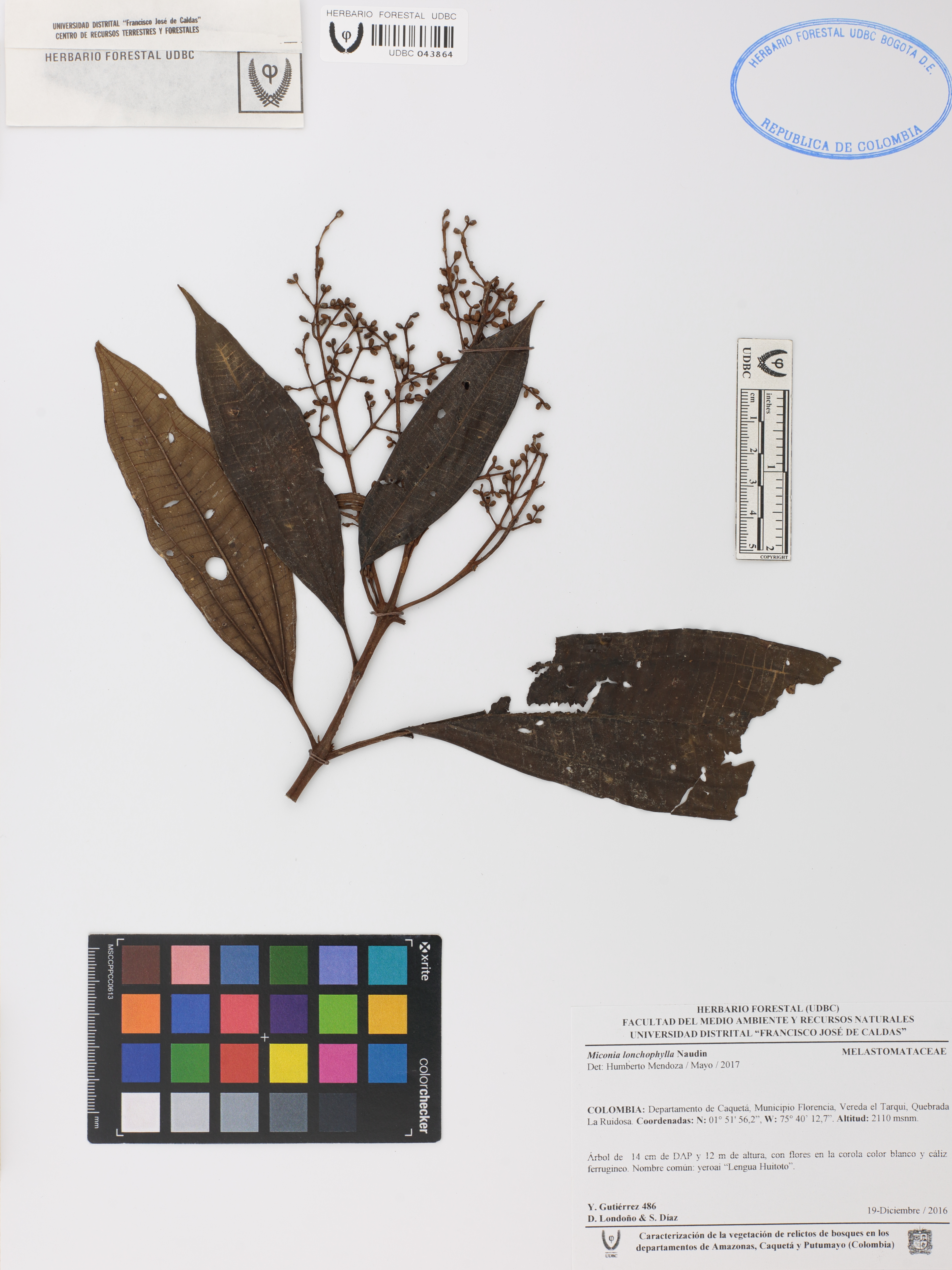 Fotografía del ejemplar Gutiérrez, Y. 486, determinado como Miconia lonchophylla en el año 2017