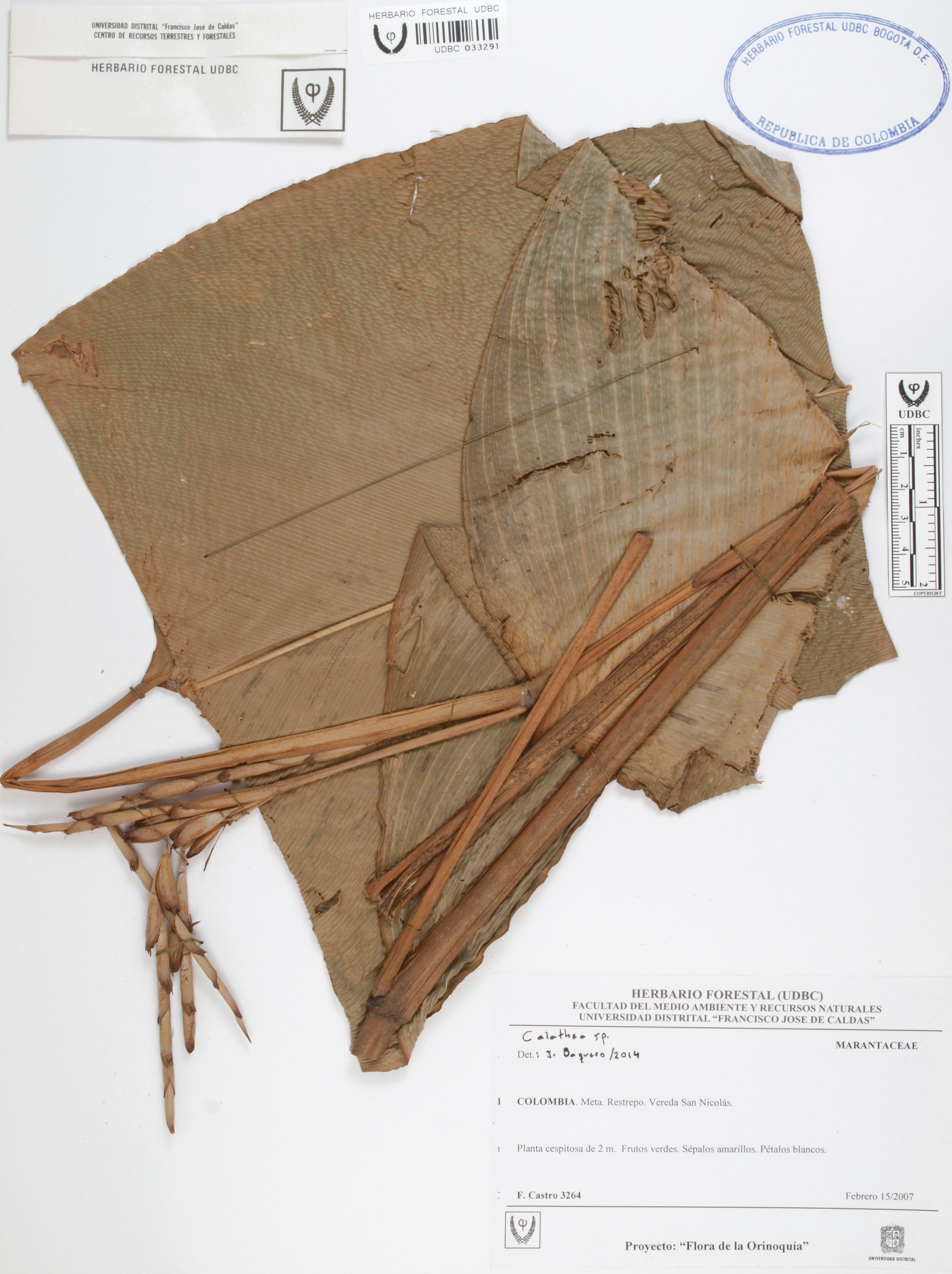 Fotografía del ejemplar Castro, F. 3264, determinado como Calathea sp. en el año 2014