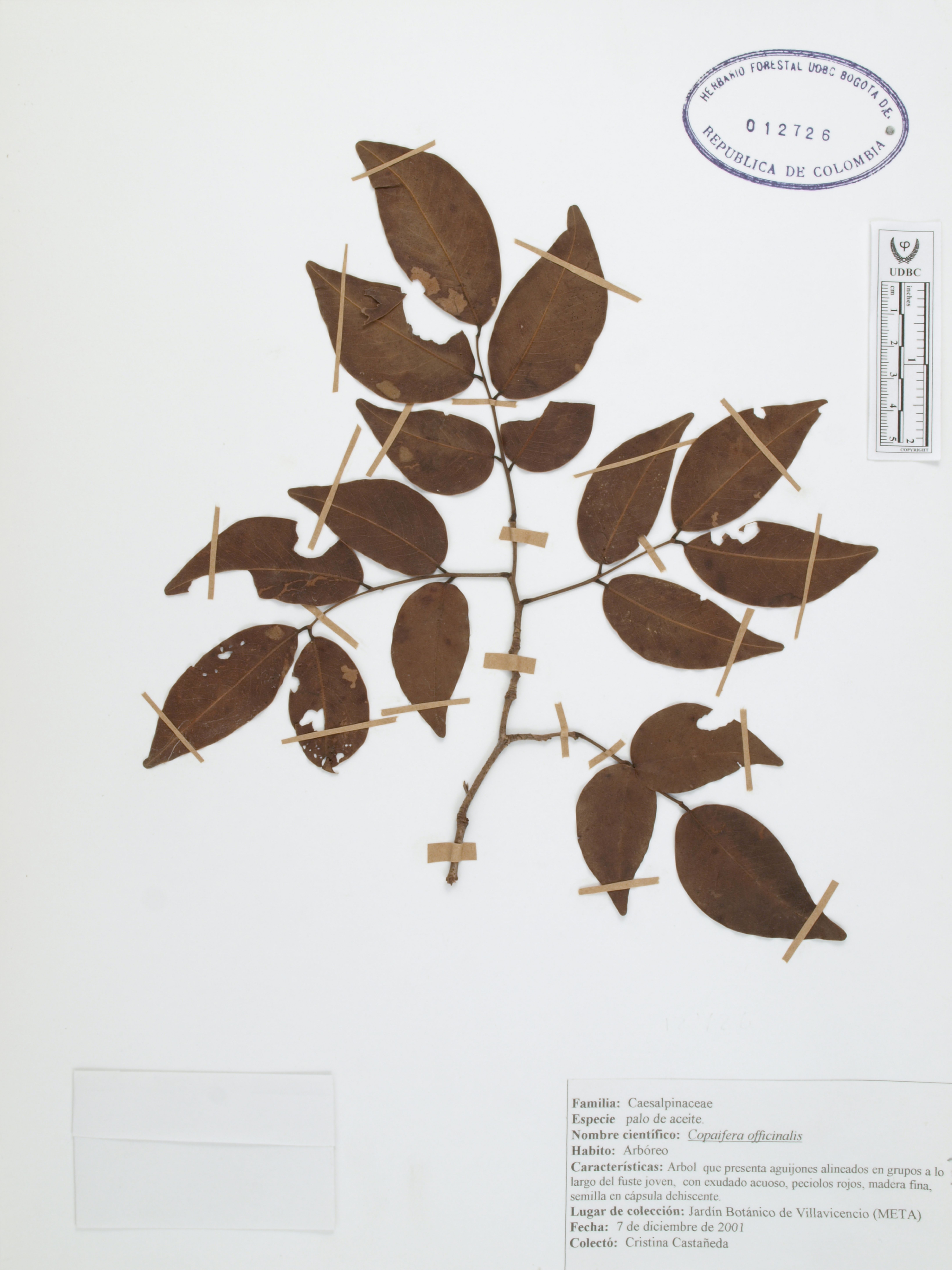 Fotografía del ejemplar Castañeda, C., determinado como Copaifera officinalis