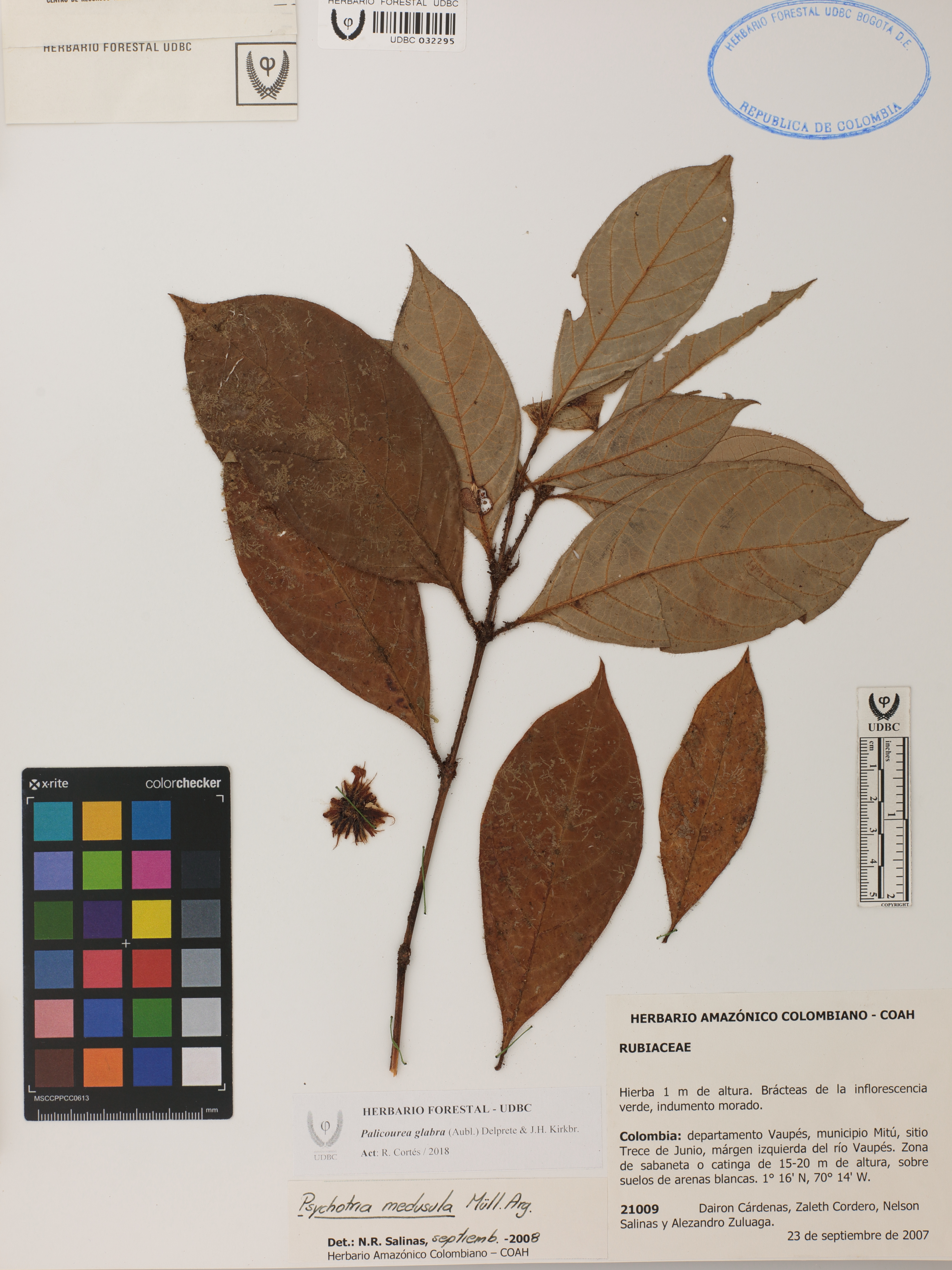 Fotografía del ejemplar Cárdenas, D. 21009, determinado como Palicourea glabra en el año 2018
