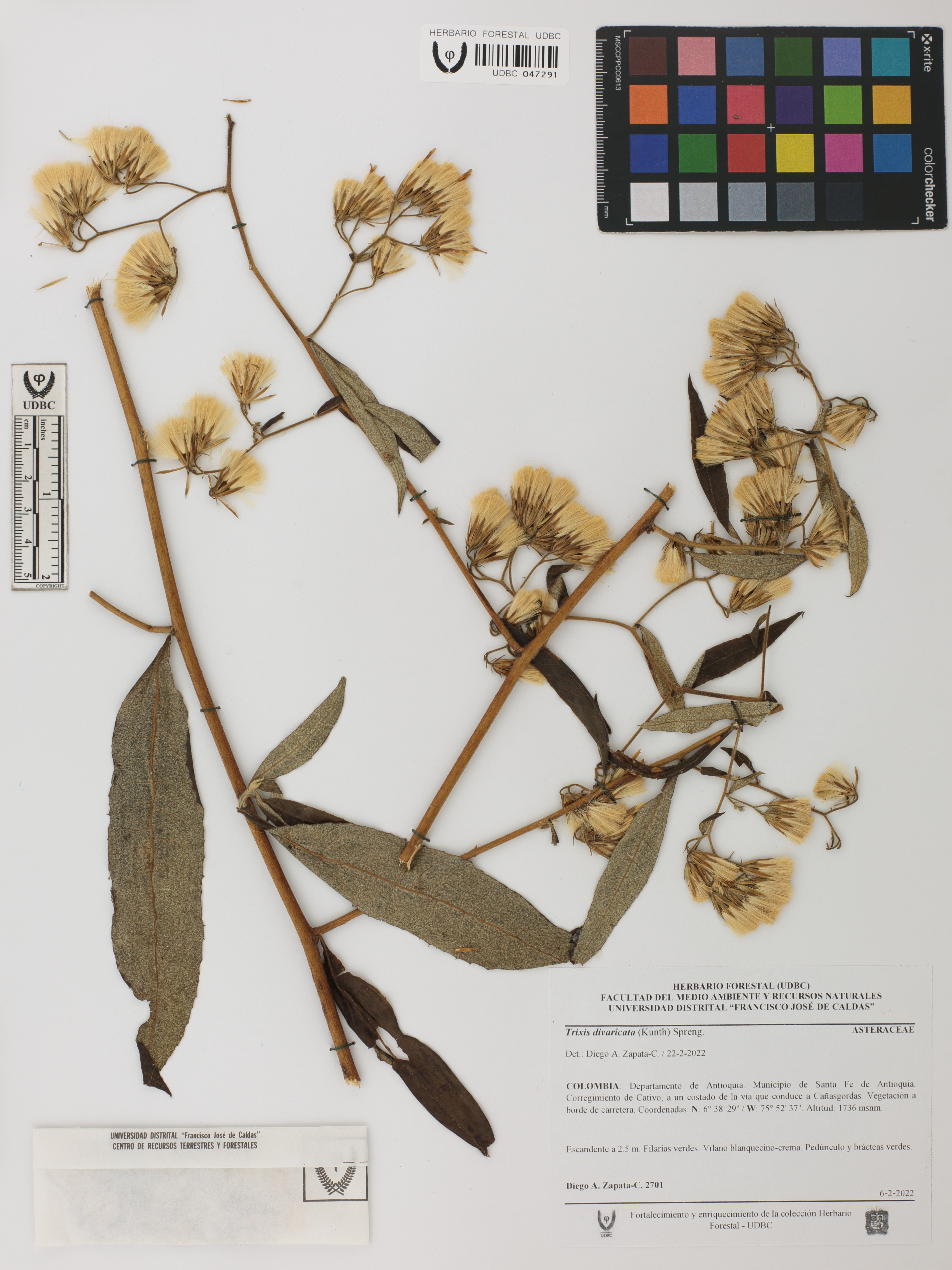 Fotografía del ejemplar Zapata-C., D. 2701, determinado como Trixis divaricata en el año 2022