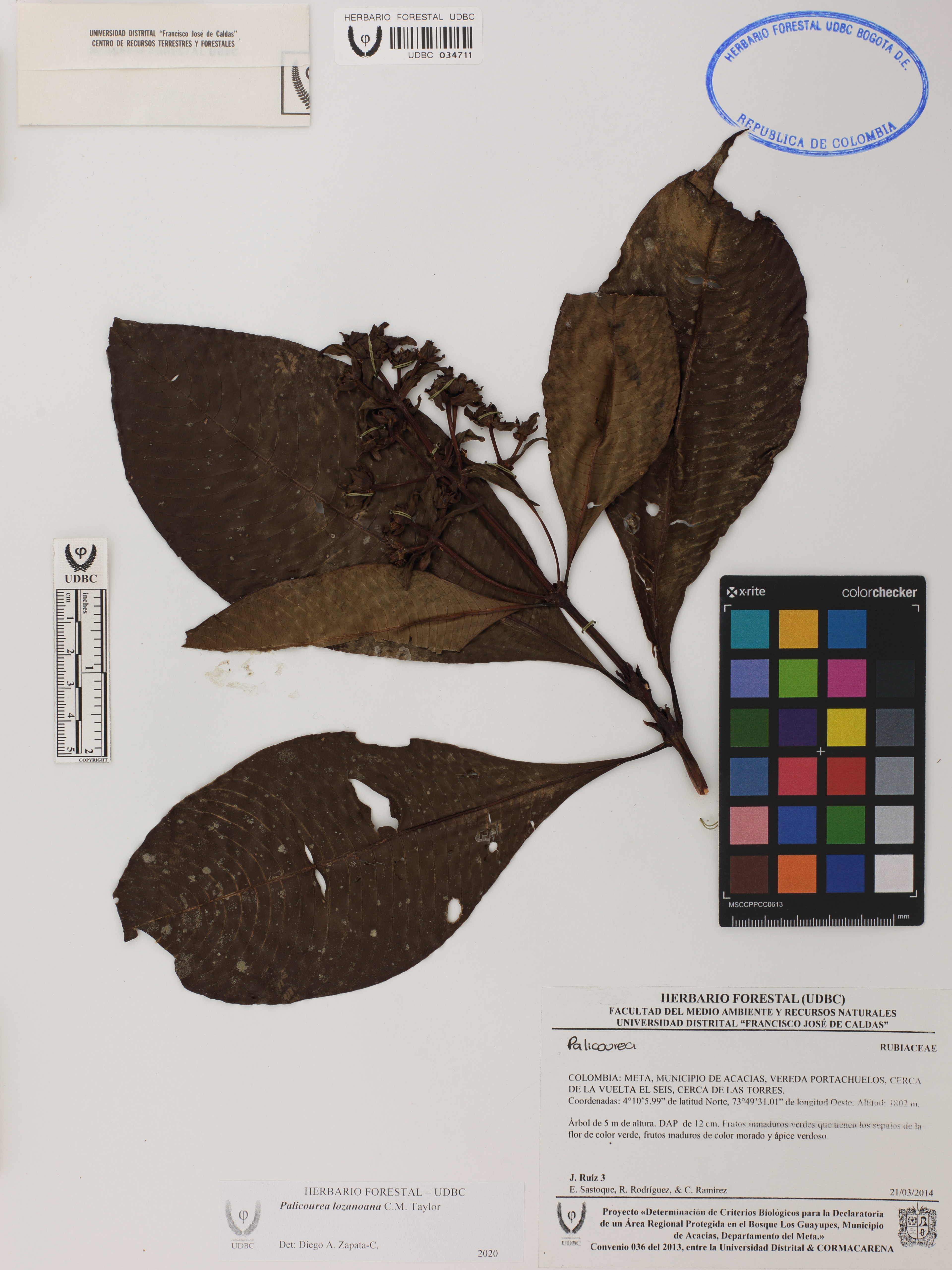 Fotografía del ejemplar Ruiz, J. 3, determinado como Palicourea lozanoana en el año 2020