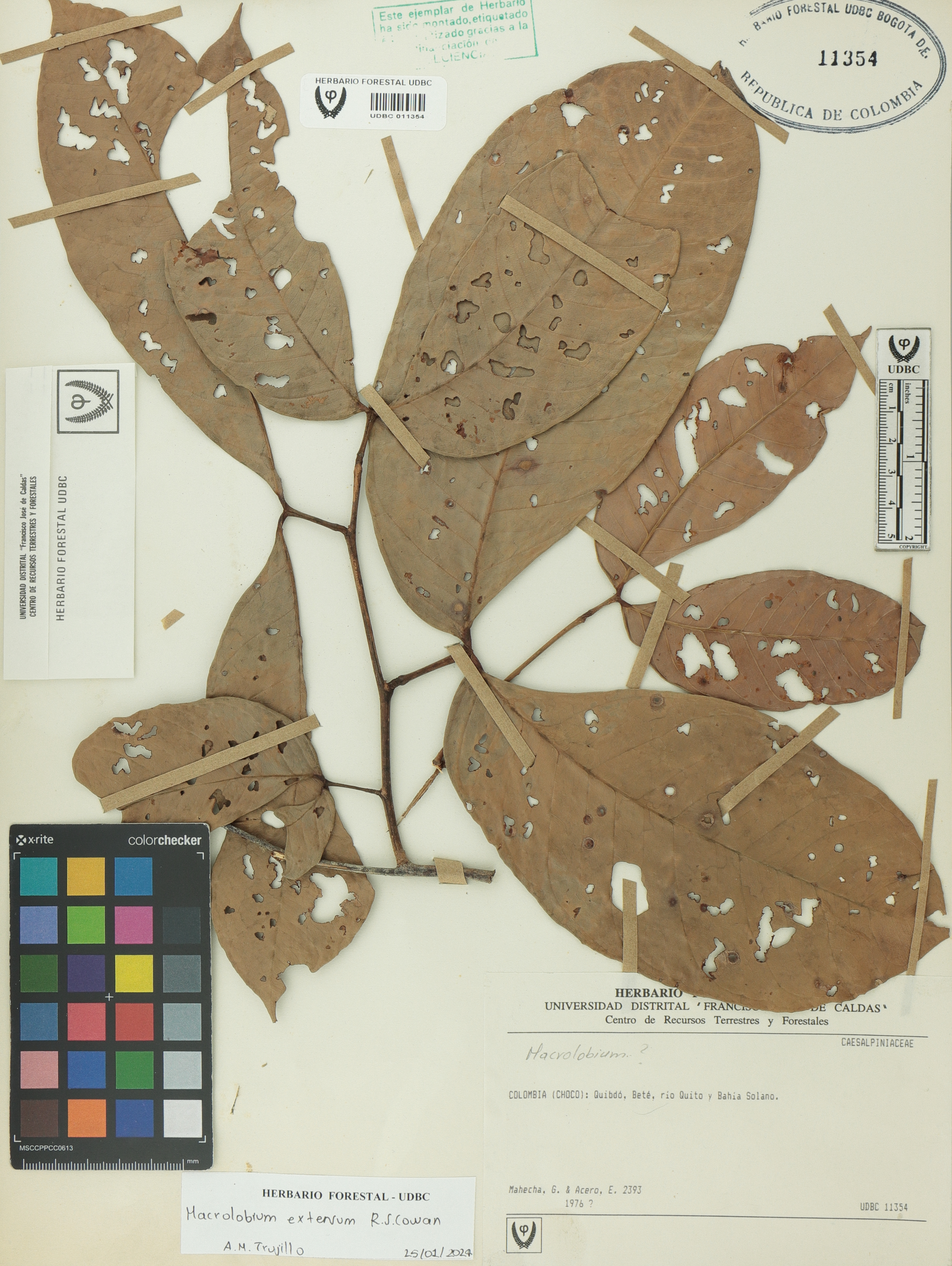Fotografía del ejemplar Mahecha, G. 2393, determinado como Macrolobium extensum en el año 2024