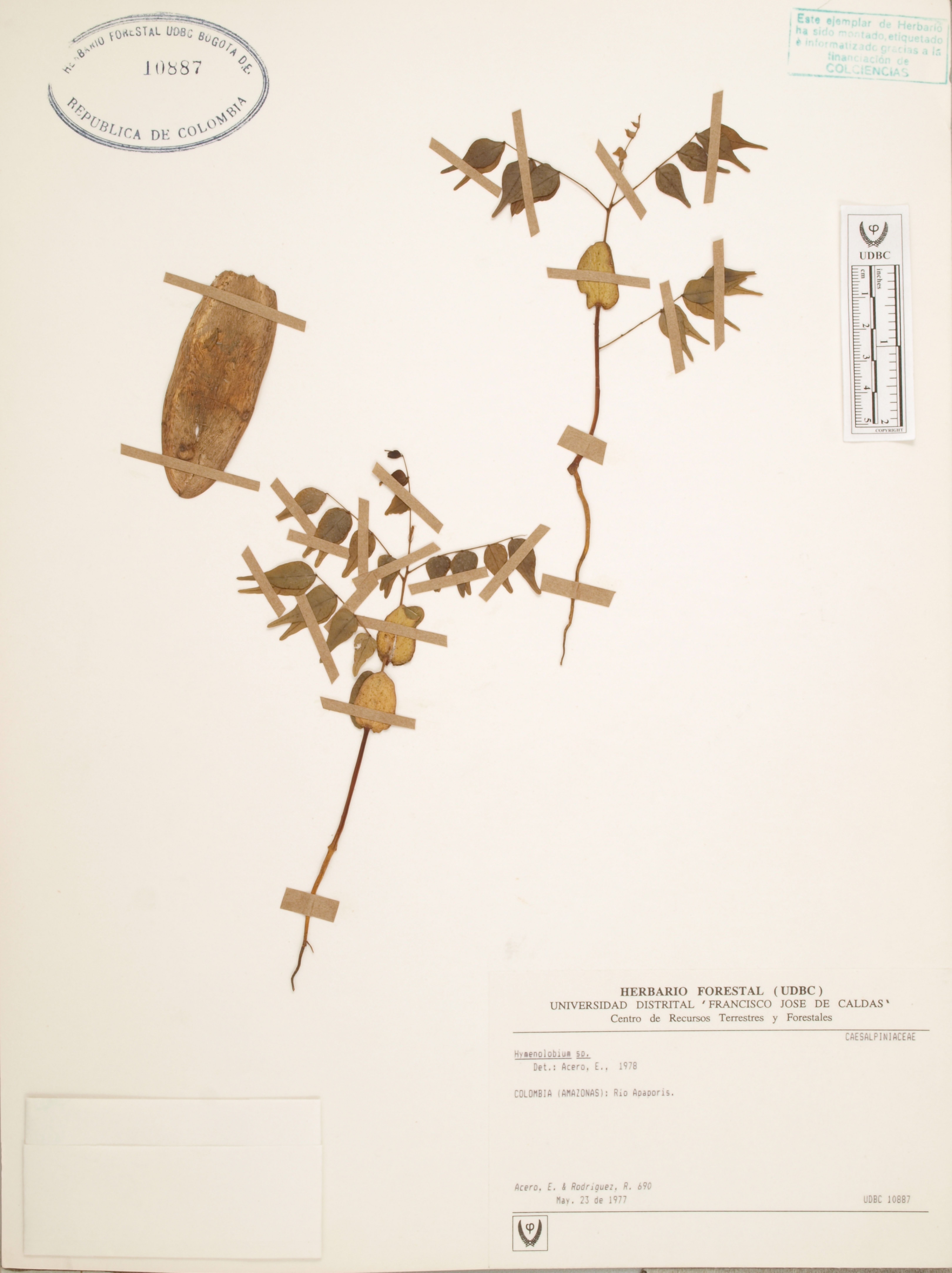 Fotografía del ejemplar Acero, E. 690, determinado como Hymenolobium sp.