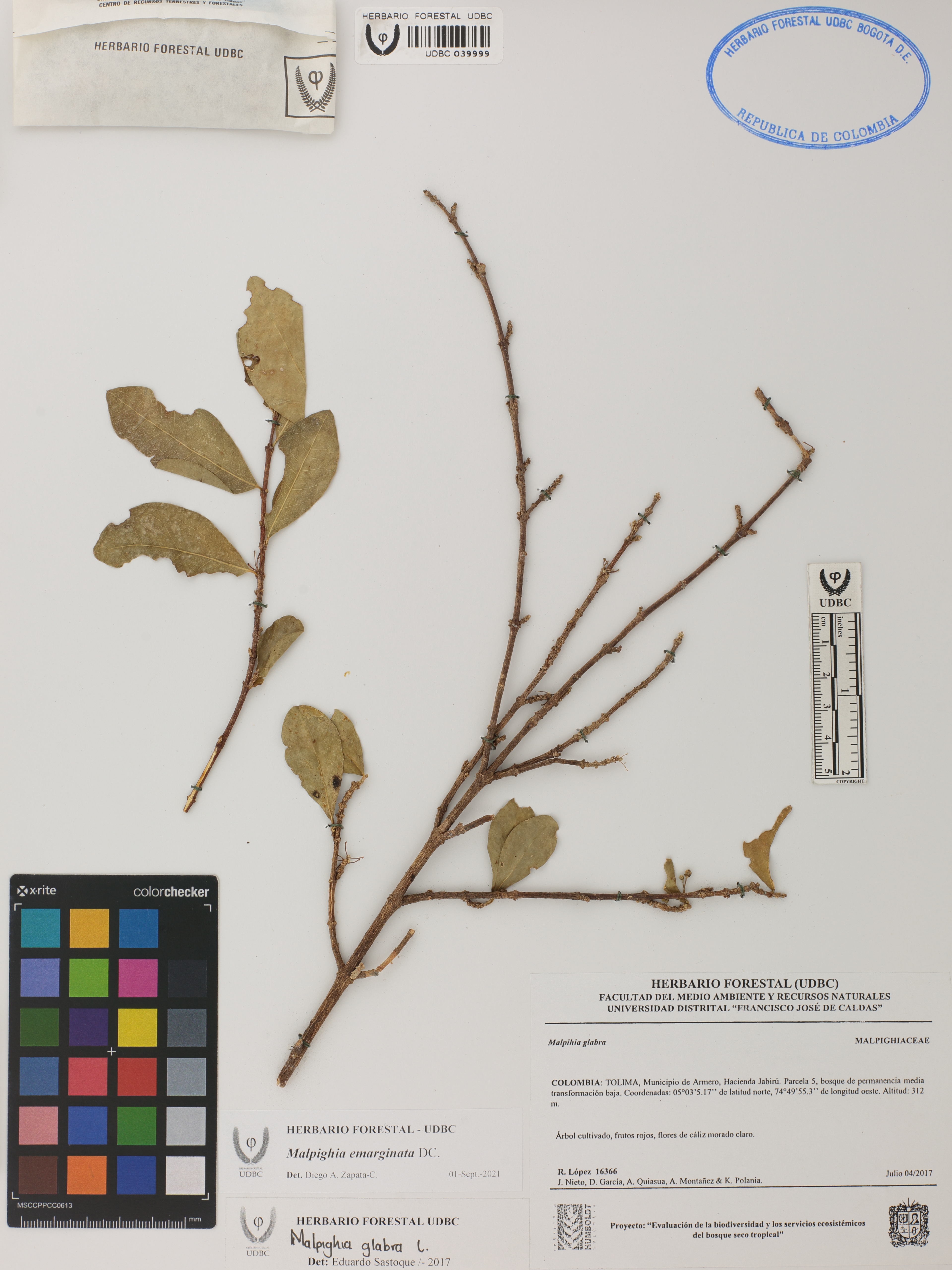 | dc.description | Fotografía del ejemplar López, R. 16366, determinado como Malpighia emarginata en el año 2021 | |
