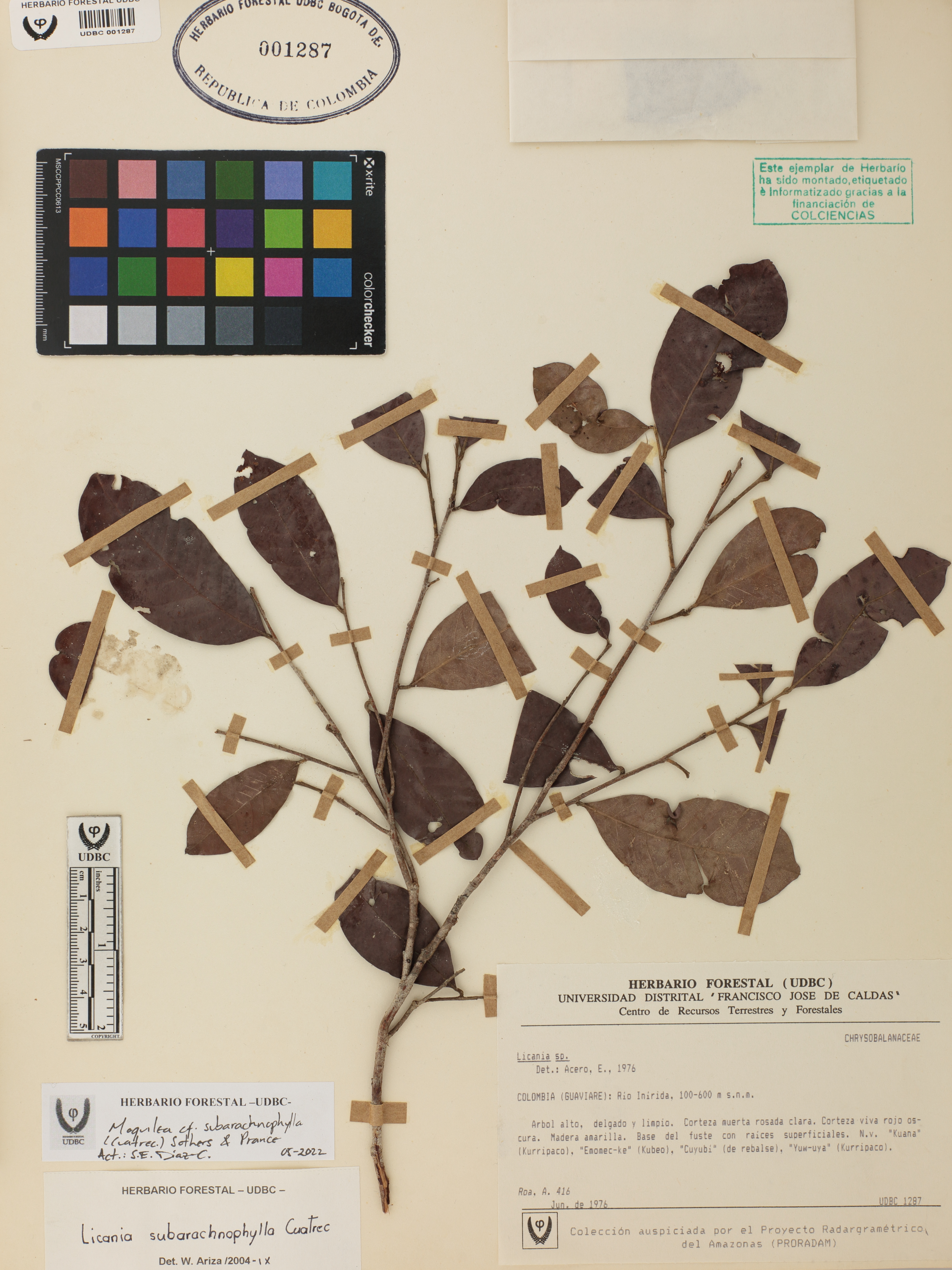 Fotografía del ejemplar Roa, A. 416, determinado como Moquilea subarachnophylla en el año 2022