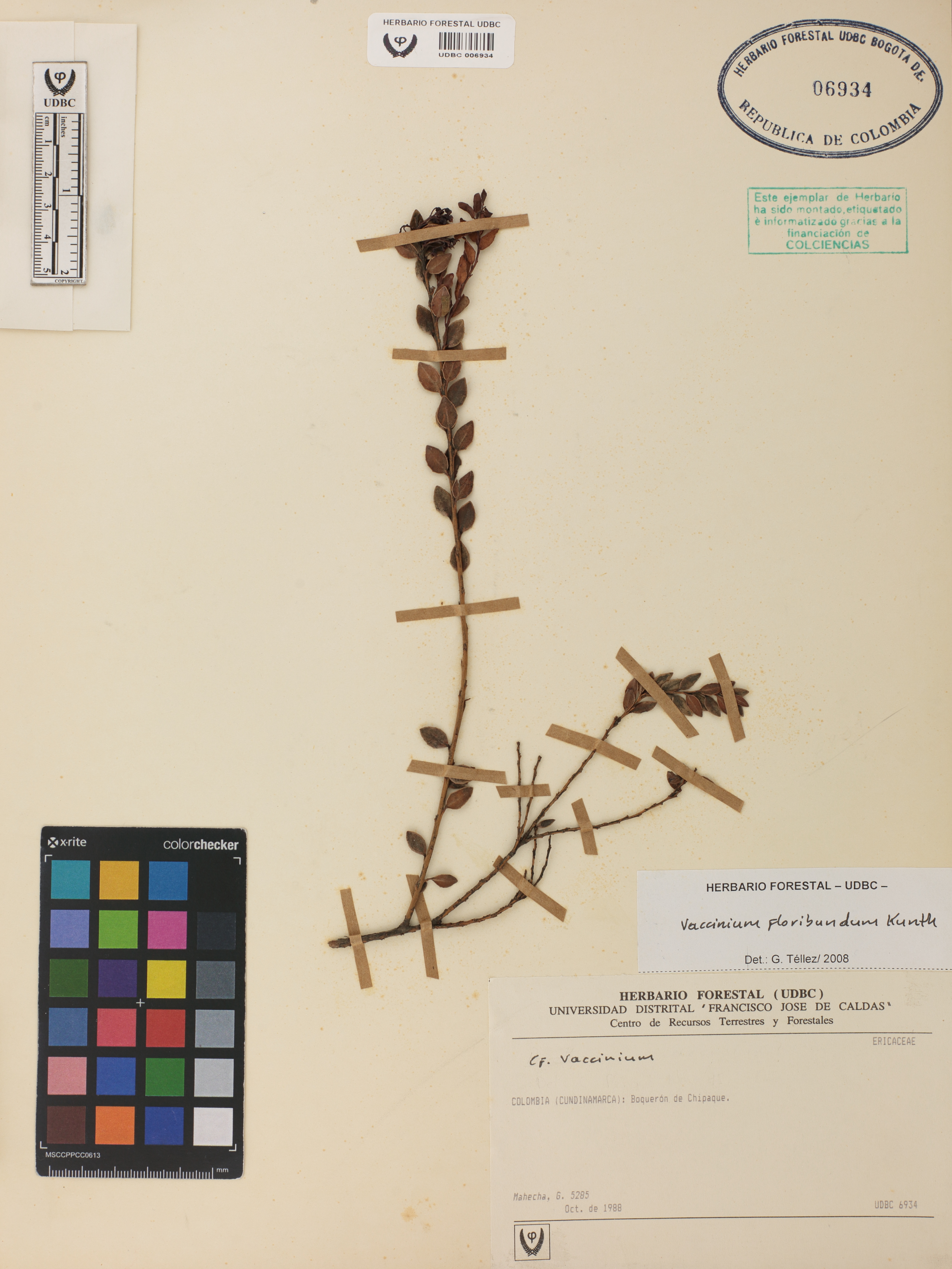 Fotografía del ejemplar Mahecha, G. 5285, determinado como Vaccinium floribundum en el año 2008