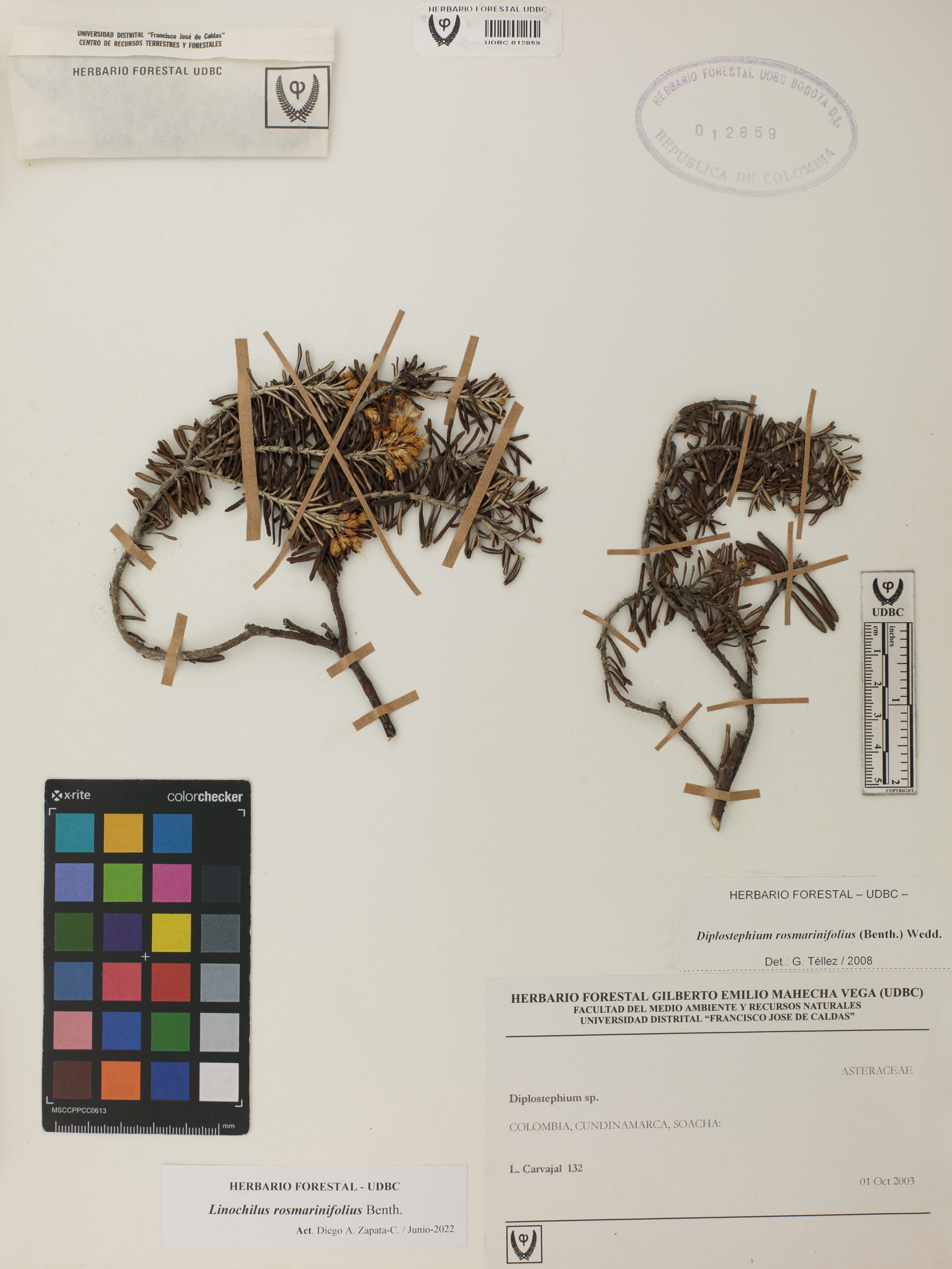 Fotografía del ejemplar Carvajal, L. 132, determinado como Linochilus rosmarinifolius en el año 2008
