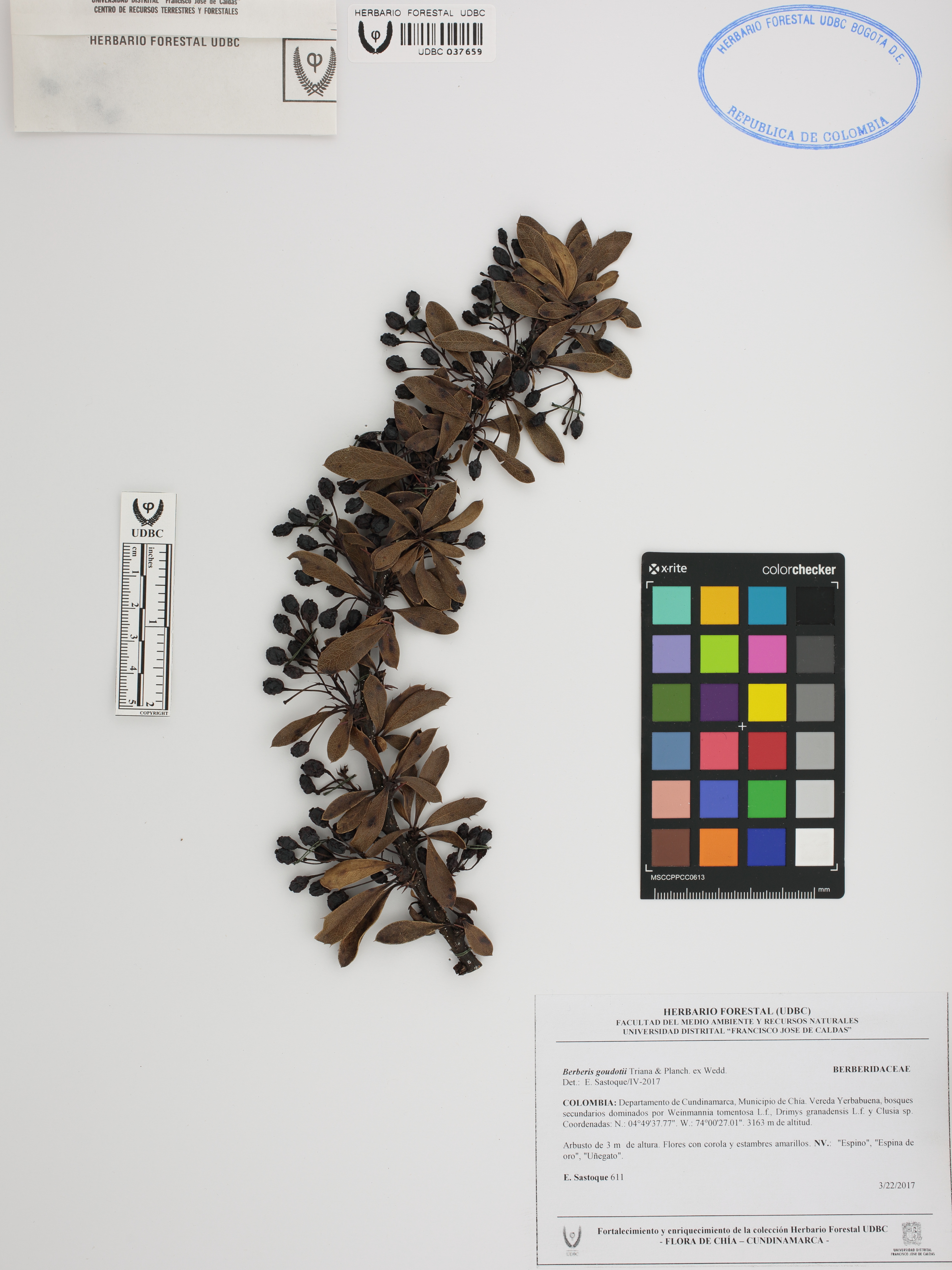 | dc.description | Fotografía del ejemplar Sastoque, E. 611, determinado como Berberis goudotii en el año 2017 | |
