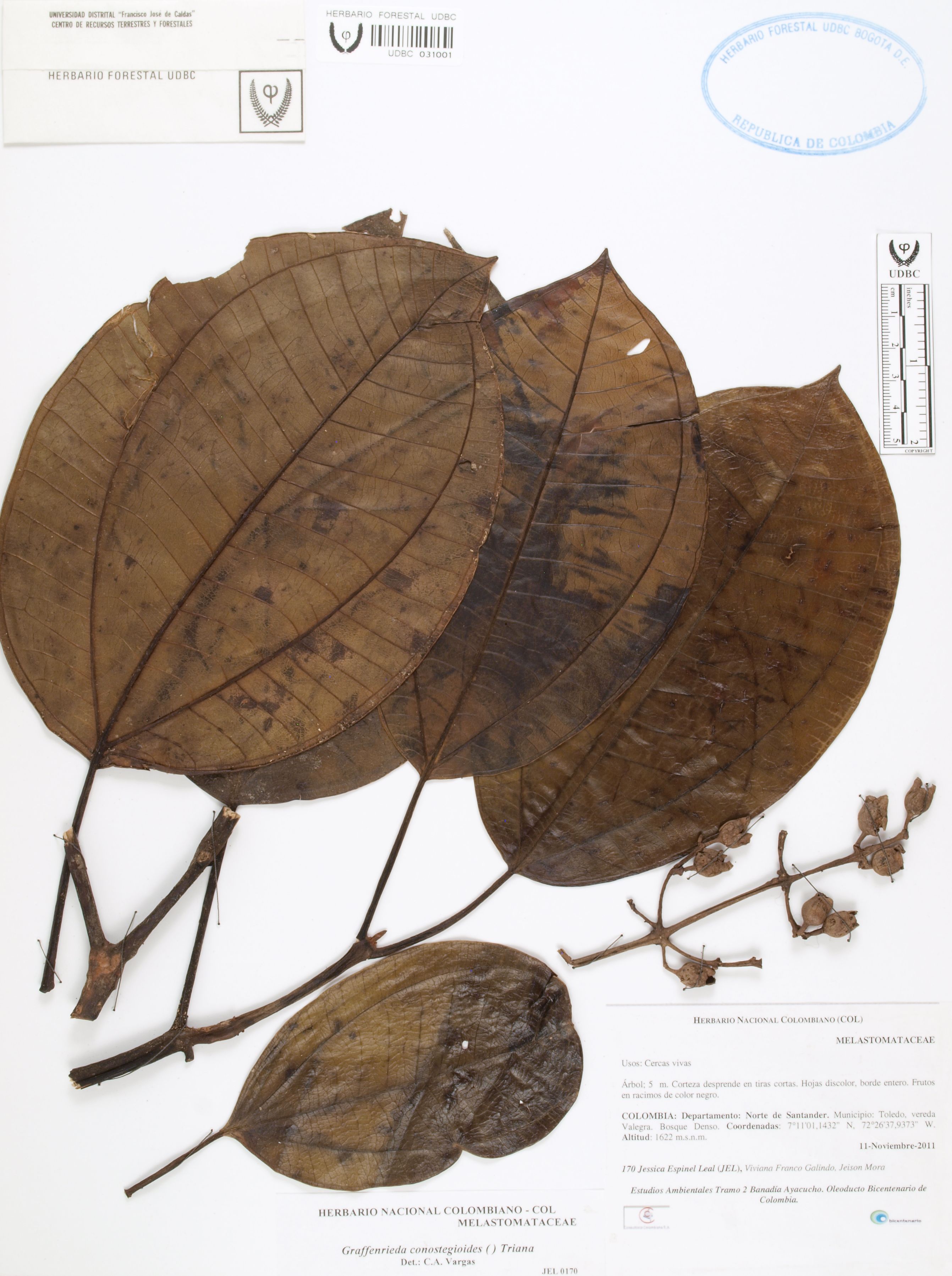 Fotografía del ejemplar Espinel-Leal, J. 170, determinado como Graffenrieda conostegioides