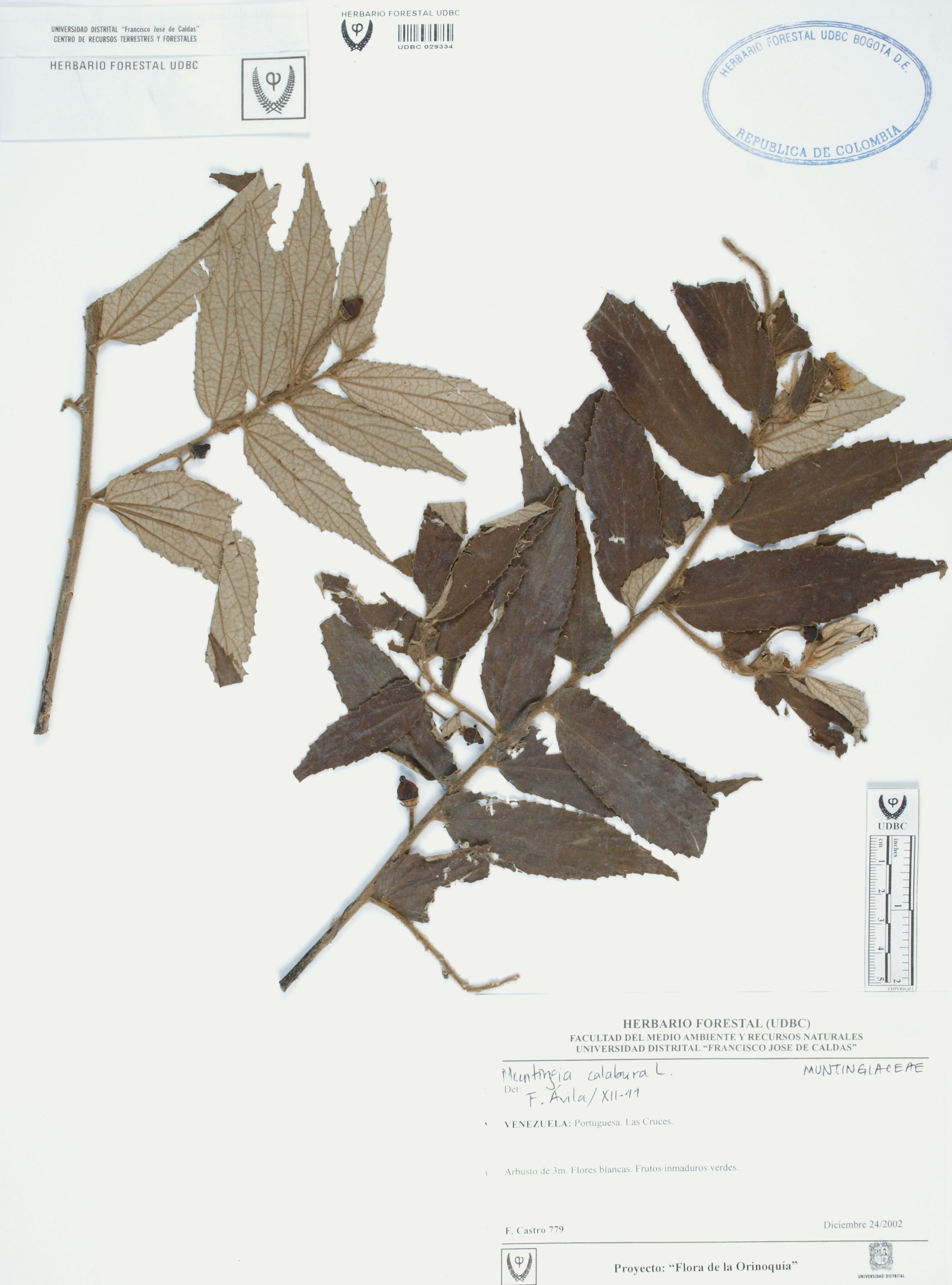 | dc.description | Fotografía del ejemplar Castro, F. 779, determinado como Muntingia calabura en el año 2011 | |
