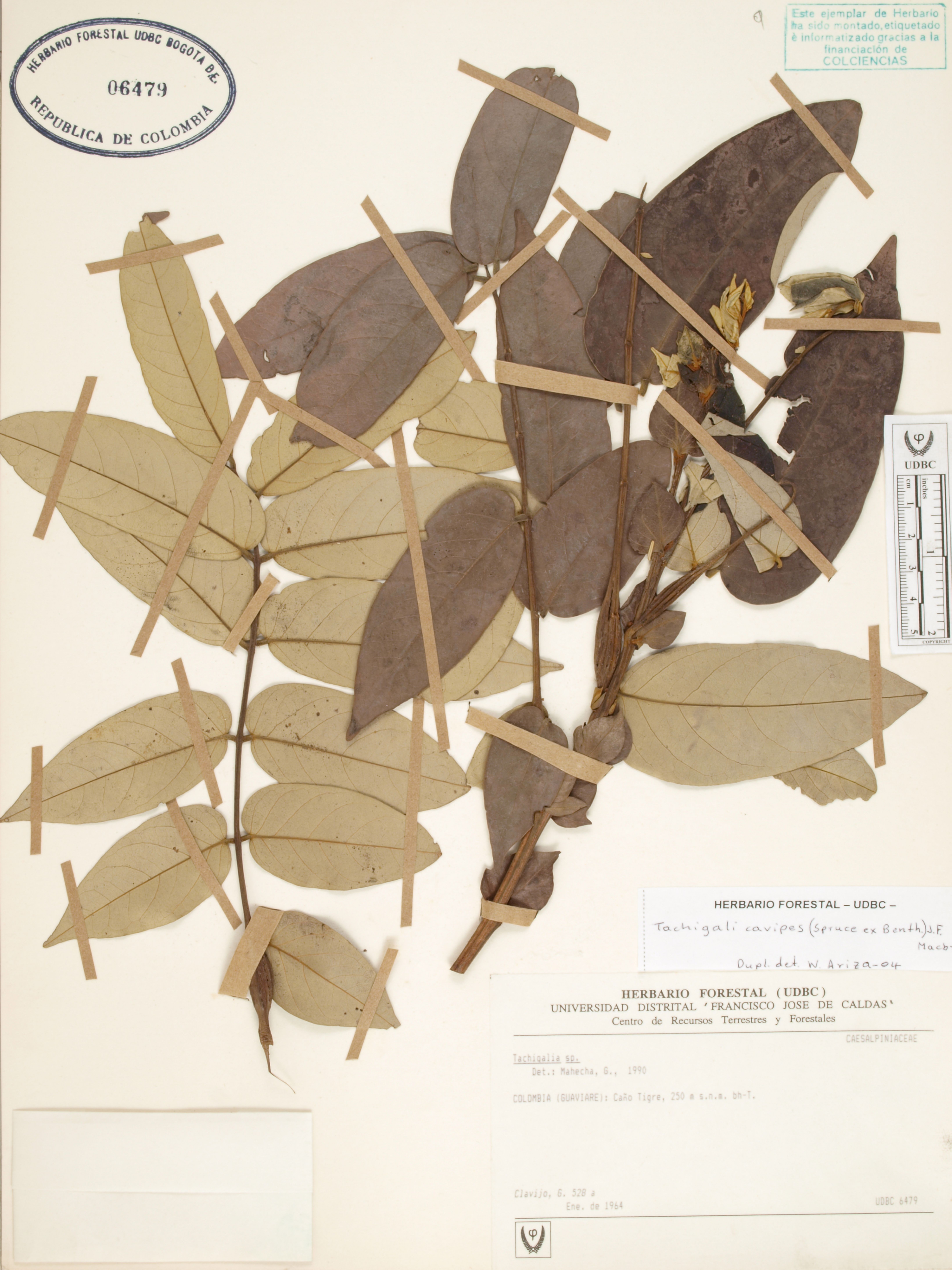 Fotografía del ejemplar Clavijo, G. 528, determinado como Tachigali cavipes en el año 2005