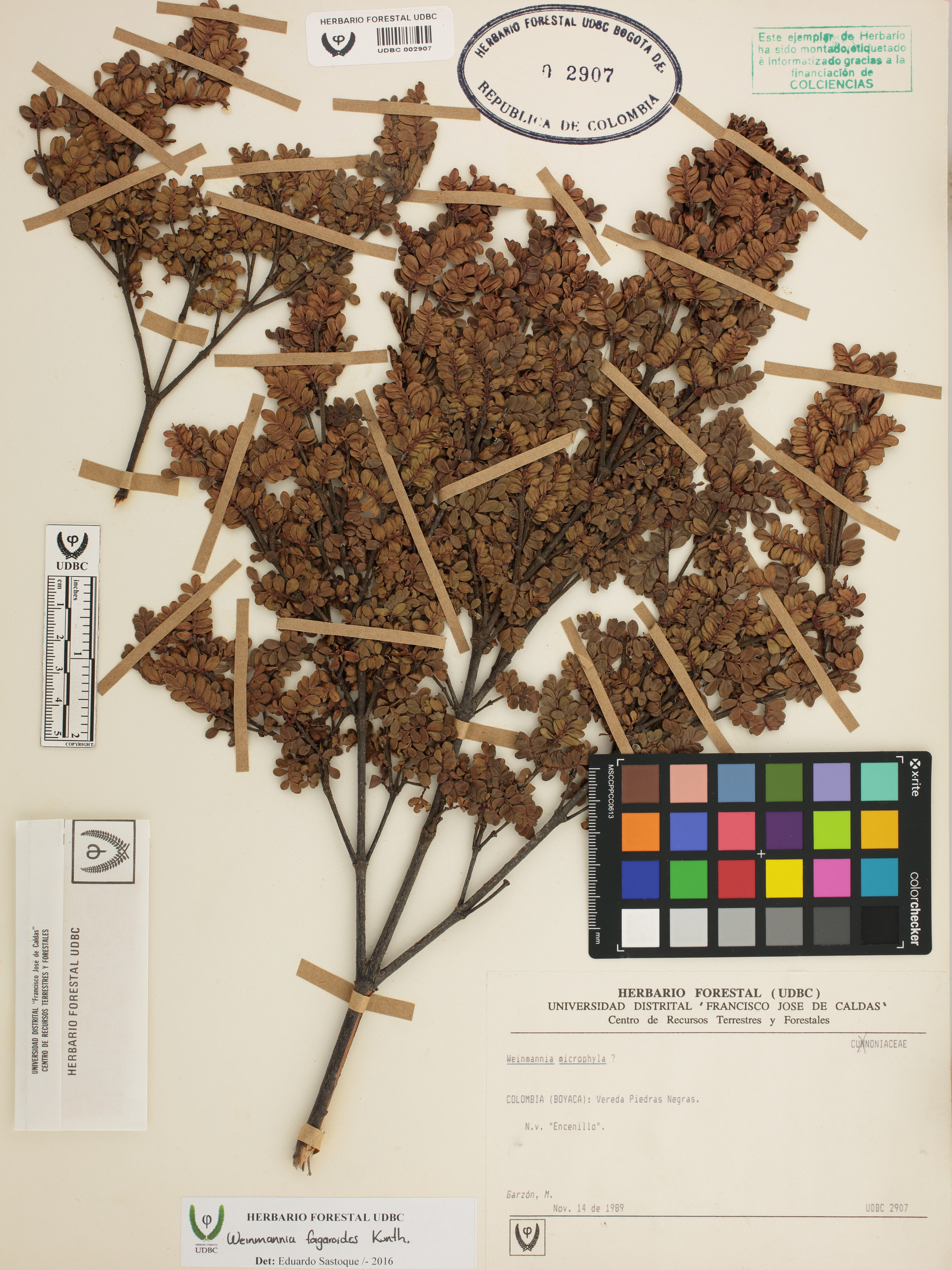 Fotografía del ejemplar Garzón, M., determinado como Weinmannia fagaroides en el año 2016