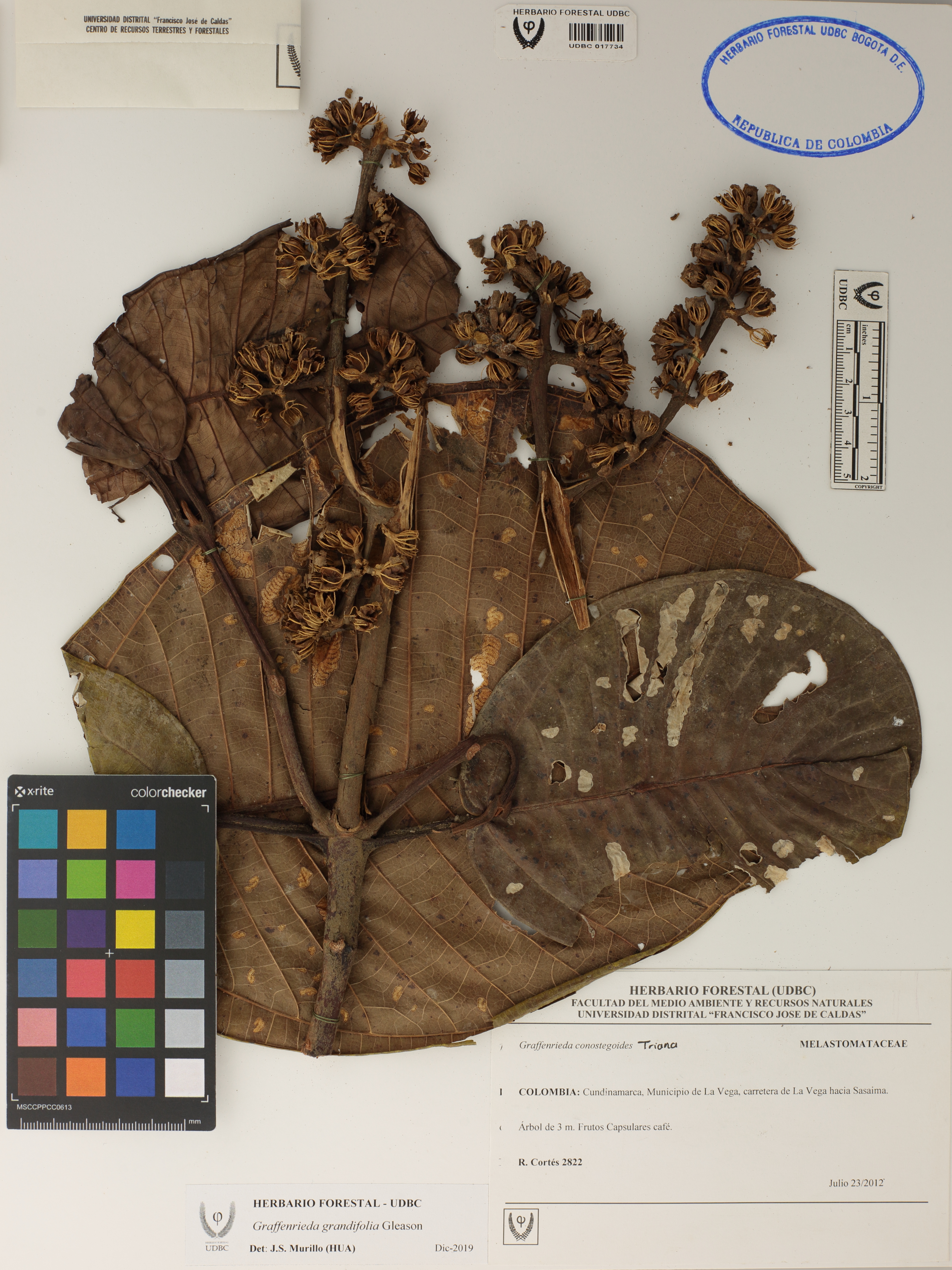 | dc.description | Fotografía del ejemplar Cortés, R. 2822, determinado como Graffenrieda grandifolia en el año 2019 | |