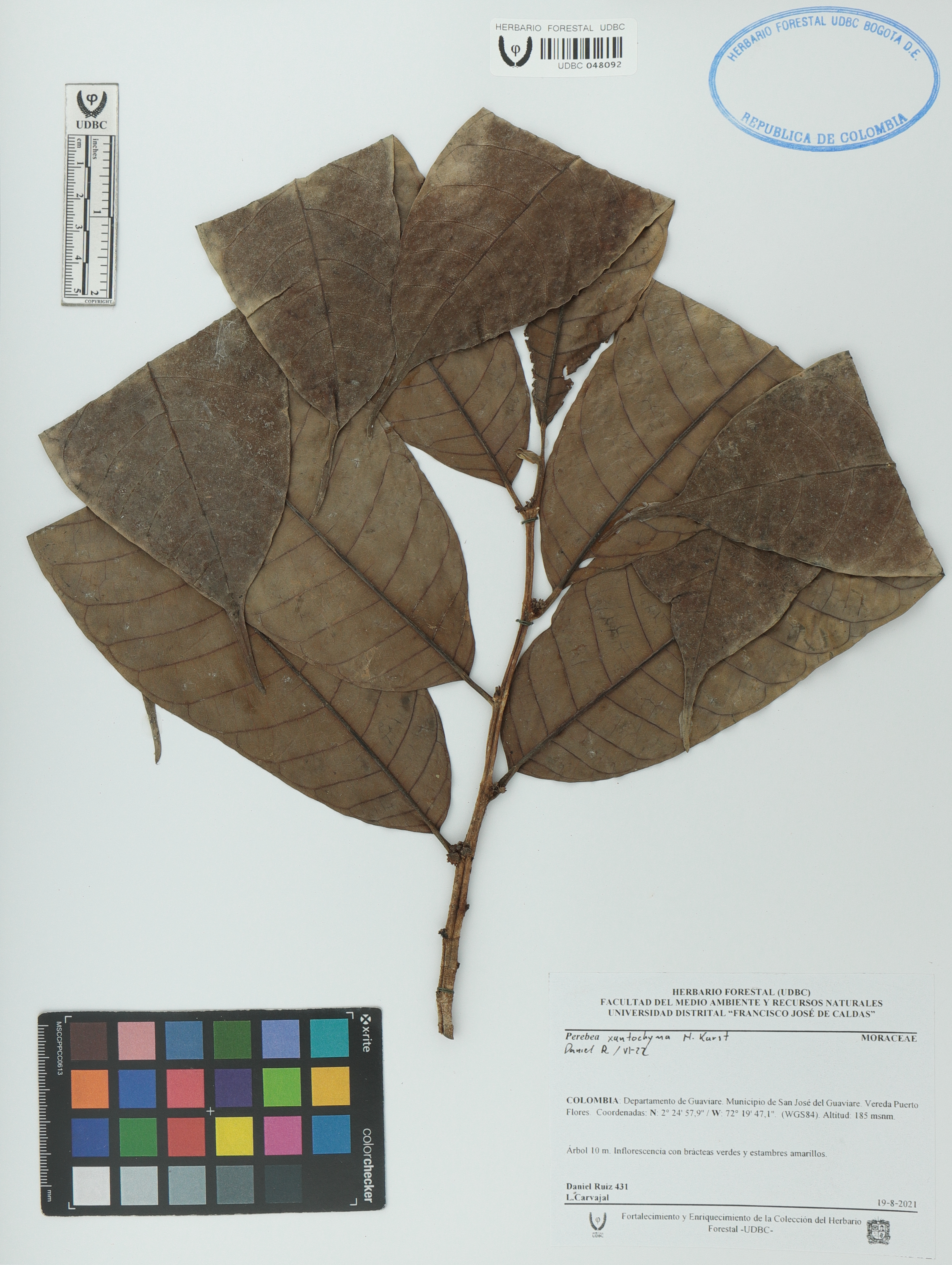 | dc.description | Fotografía del ejemplar Ruiz, Daniel 431, determinado como Perebea xanthochyma en el año 2022 | |