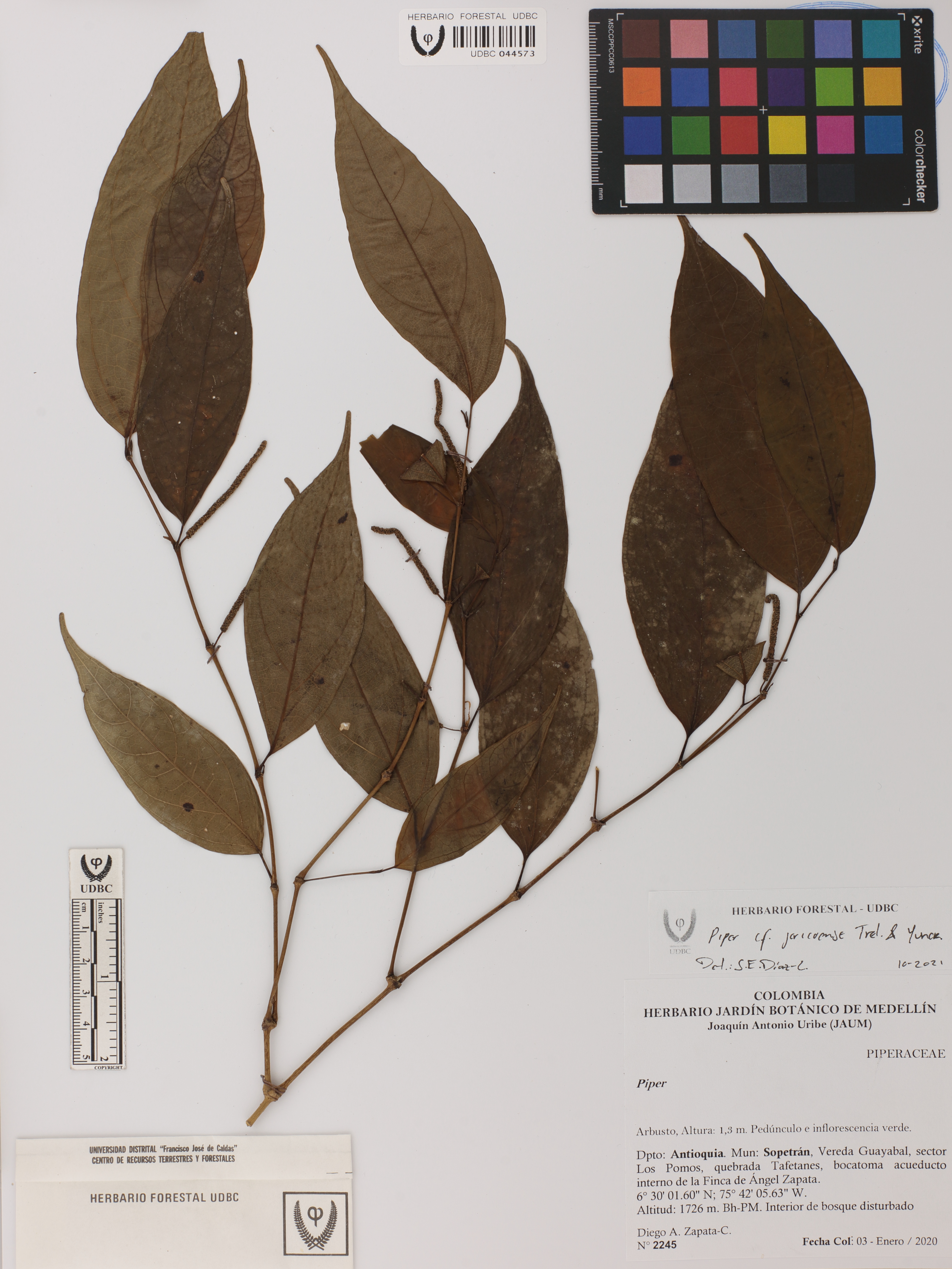 Fotografía del ejemplar Zapata-C., D. 2245, determinado como Piper jericoense en el año 2021