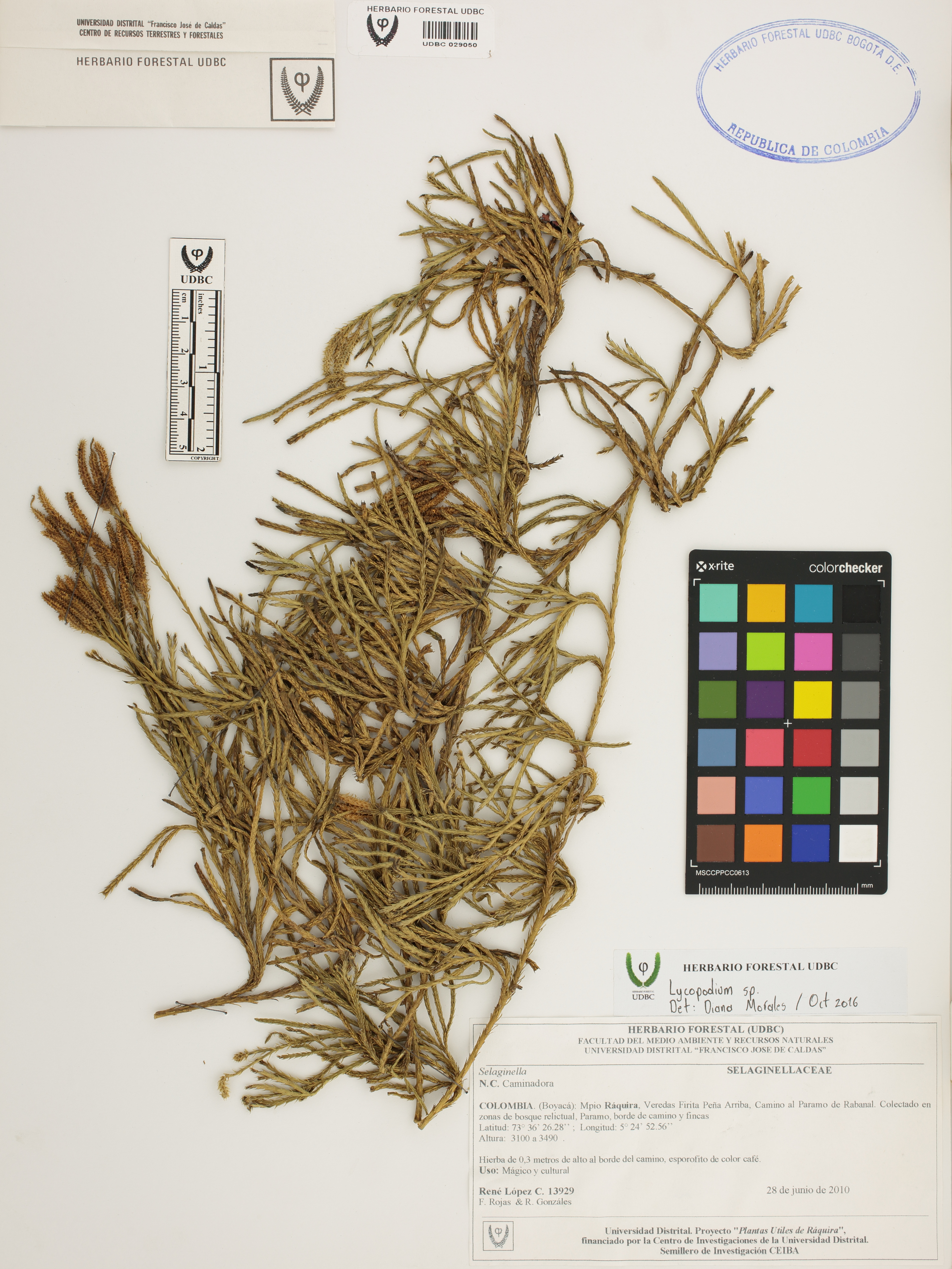 Fotografía del ejemplar López, R. 13929, determinado como Lycopodium sp. en el año 2016