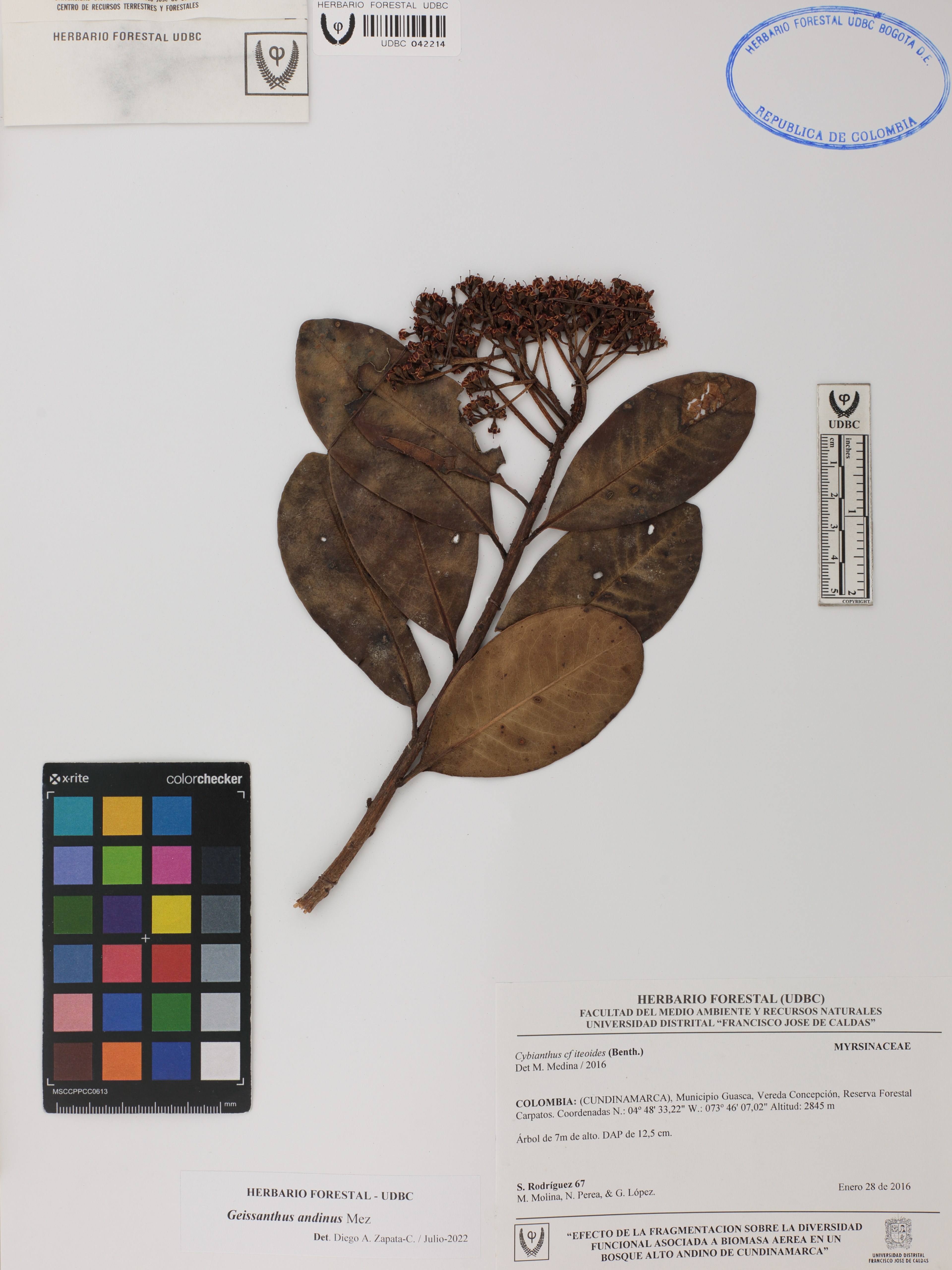 Fotografía del ejemplar Rodríguez, S. 67, determinado como Geissanthus andinus en el año 2022