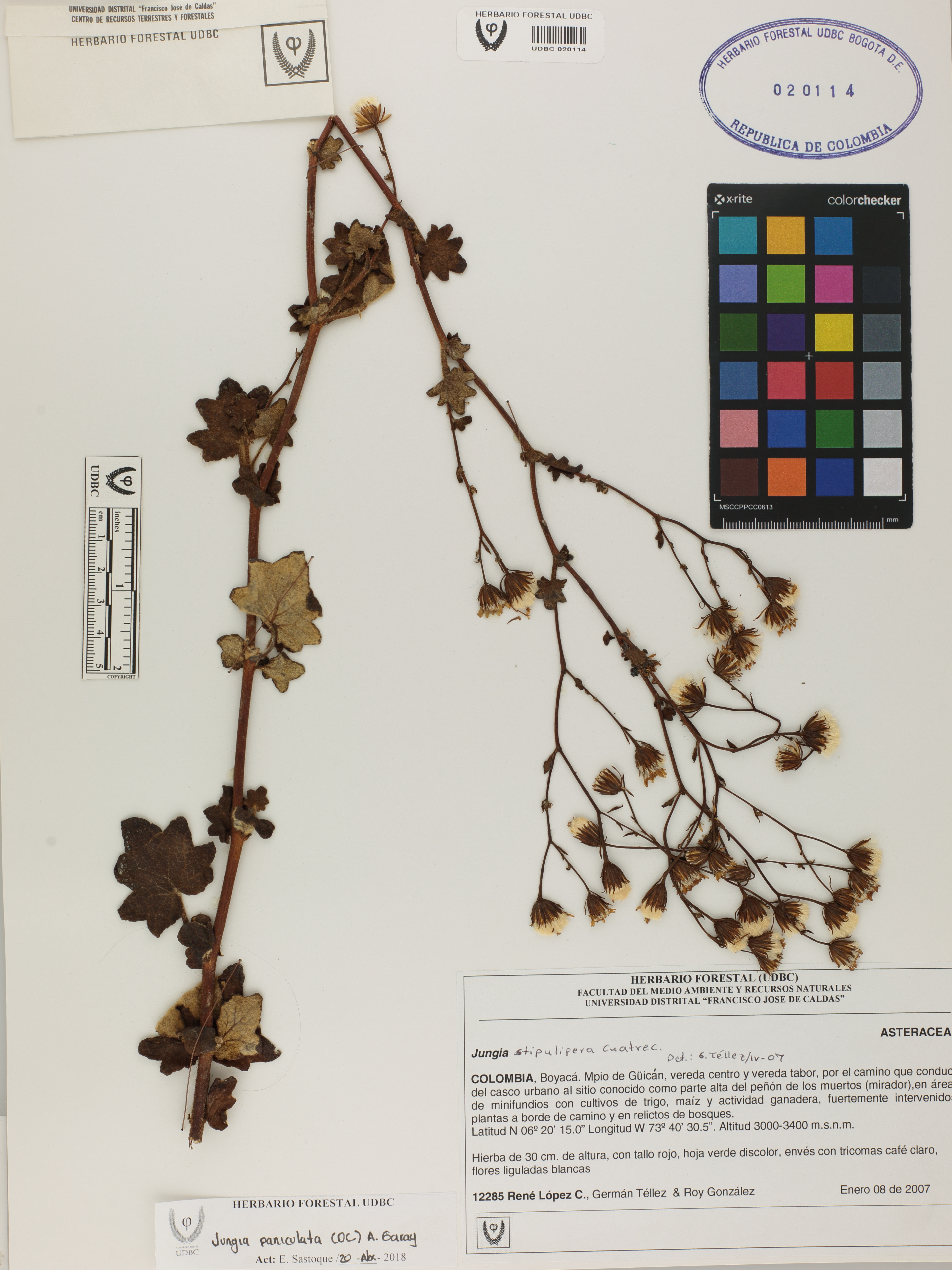 | dc.description | Fotografía del ejemplar López, R. 12285, determinado como Jungia paniculata en el año 2007 | |