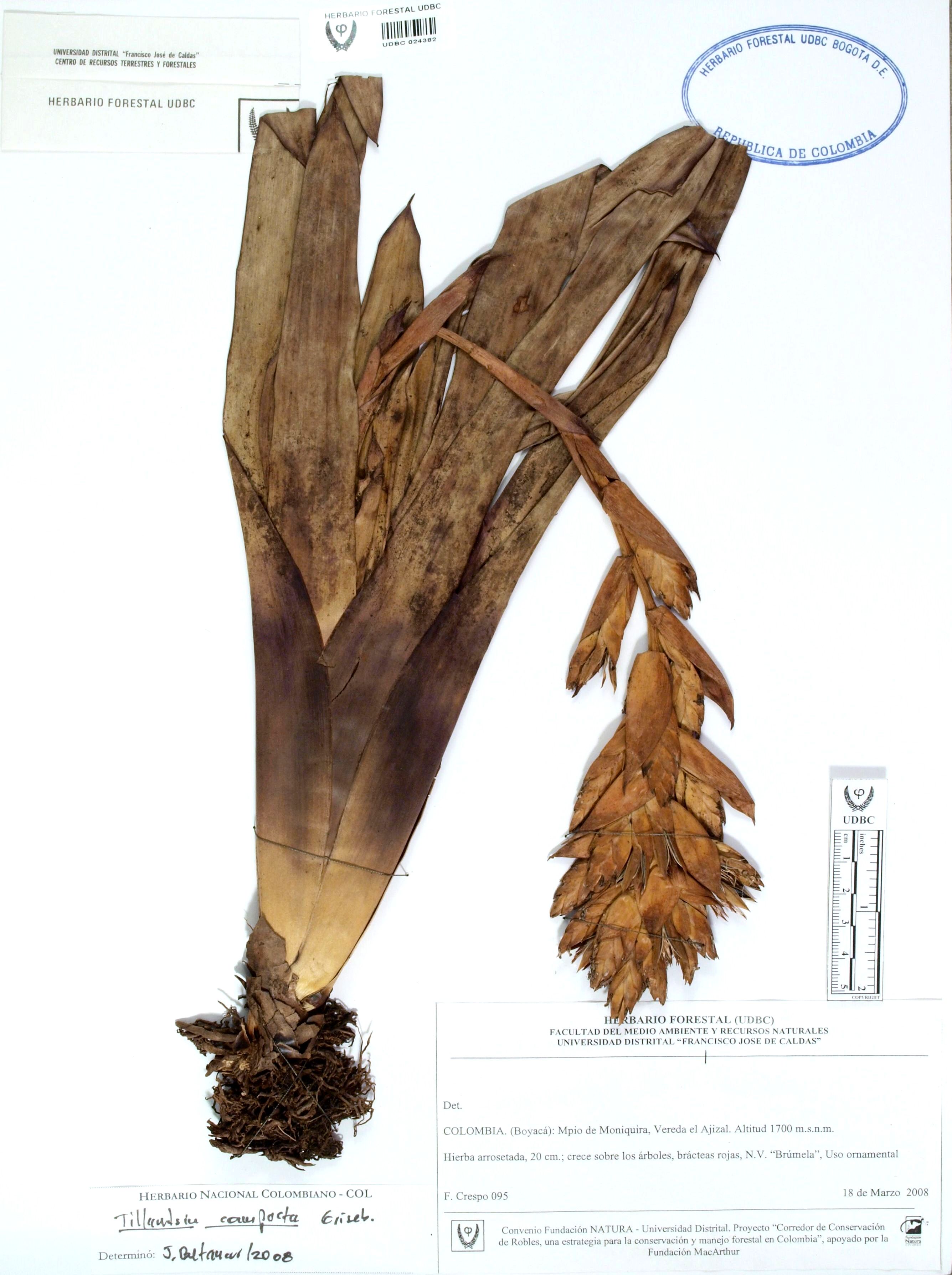 Fotografía del ejemplar Crespo, F. 95, determinado como Tillandsia compacta en el año 2008
